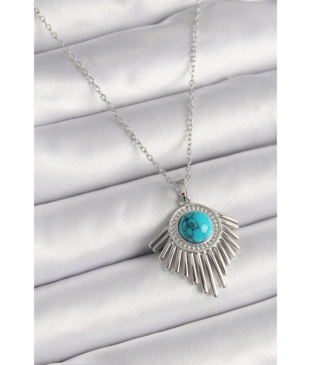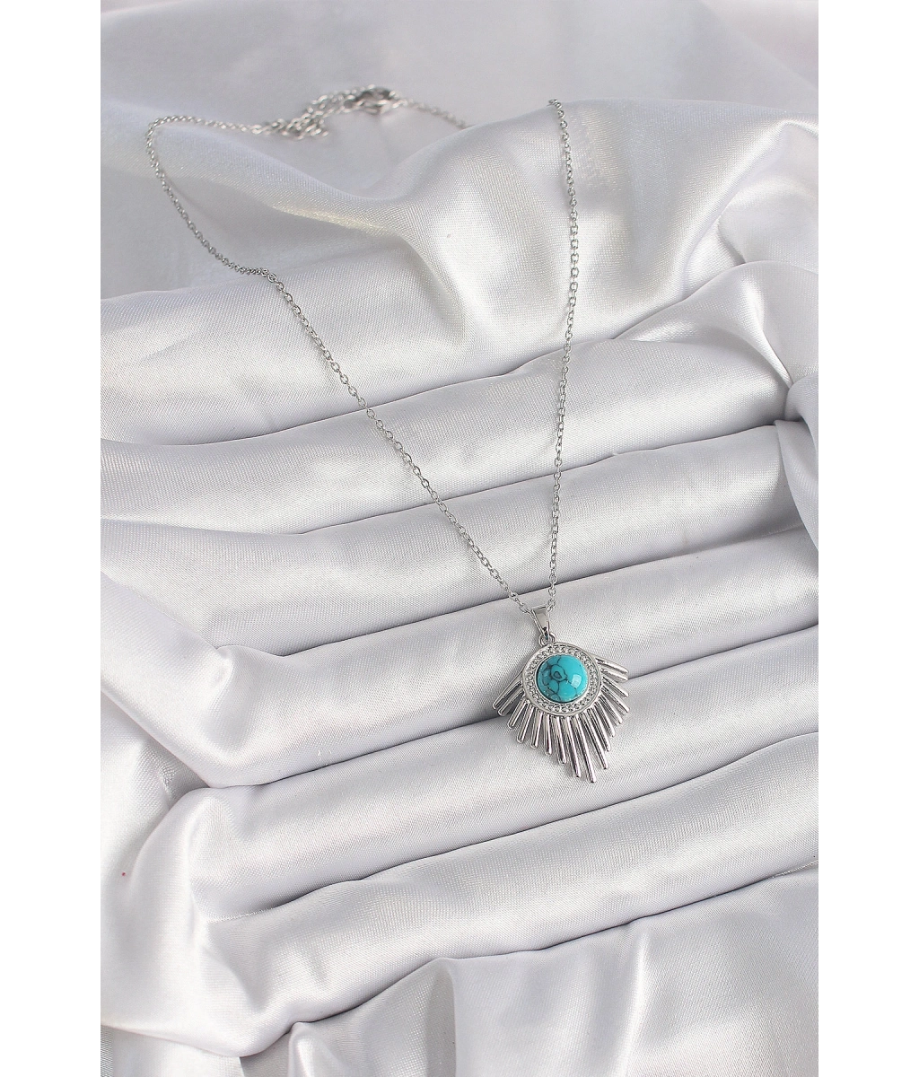 Shoecide 316l Çelik Gümüş Renk Zincir Mavi Boncuklu Zirkon Taşlı Kadın Kolye