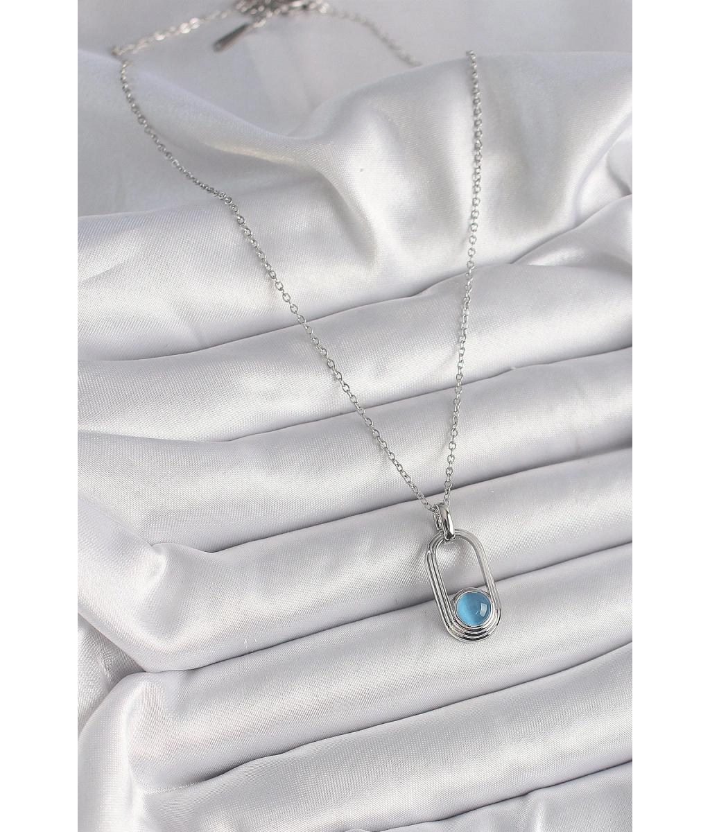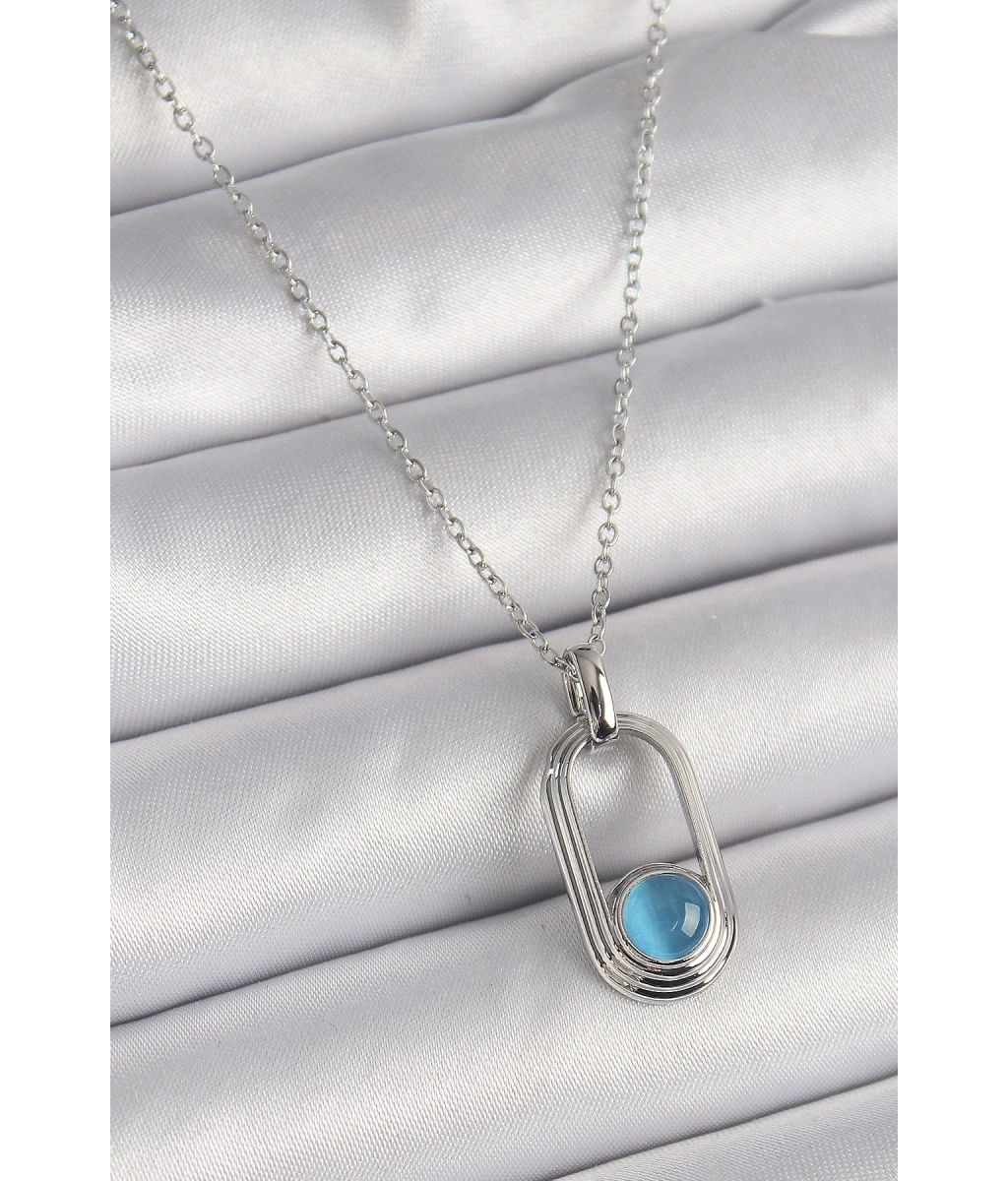 Shoecide 316l Çelik Gümüş Renk Zincir Mavi Kedi Göz Model Kadın Kolye
