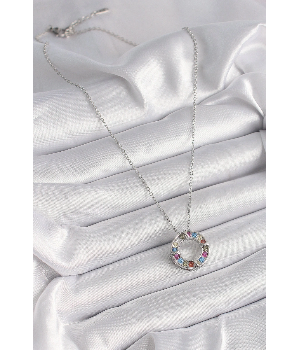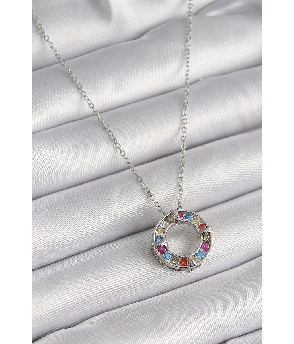Shoecide 316l Çelik Gümüş Renk Zincir Renkli Zirkon Taşlı Xoxo Model Kadın Kolye
