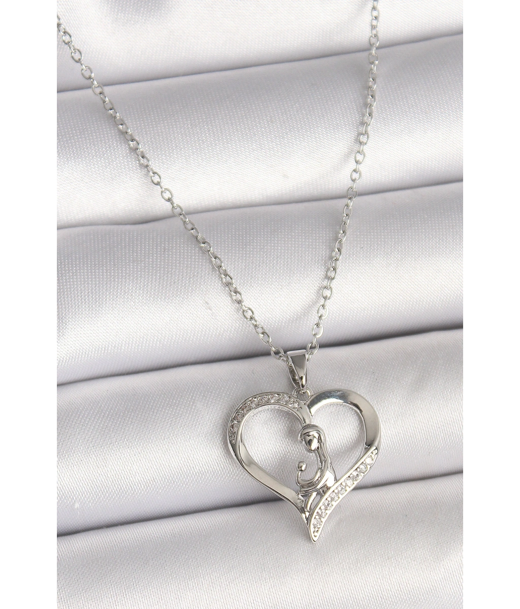 Shoecide 316l Çelik Gümüş Renk Zincir Zirkon Taş Detaylı Kalp Model Kadın Kolye
