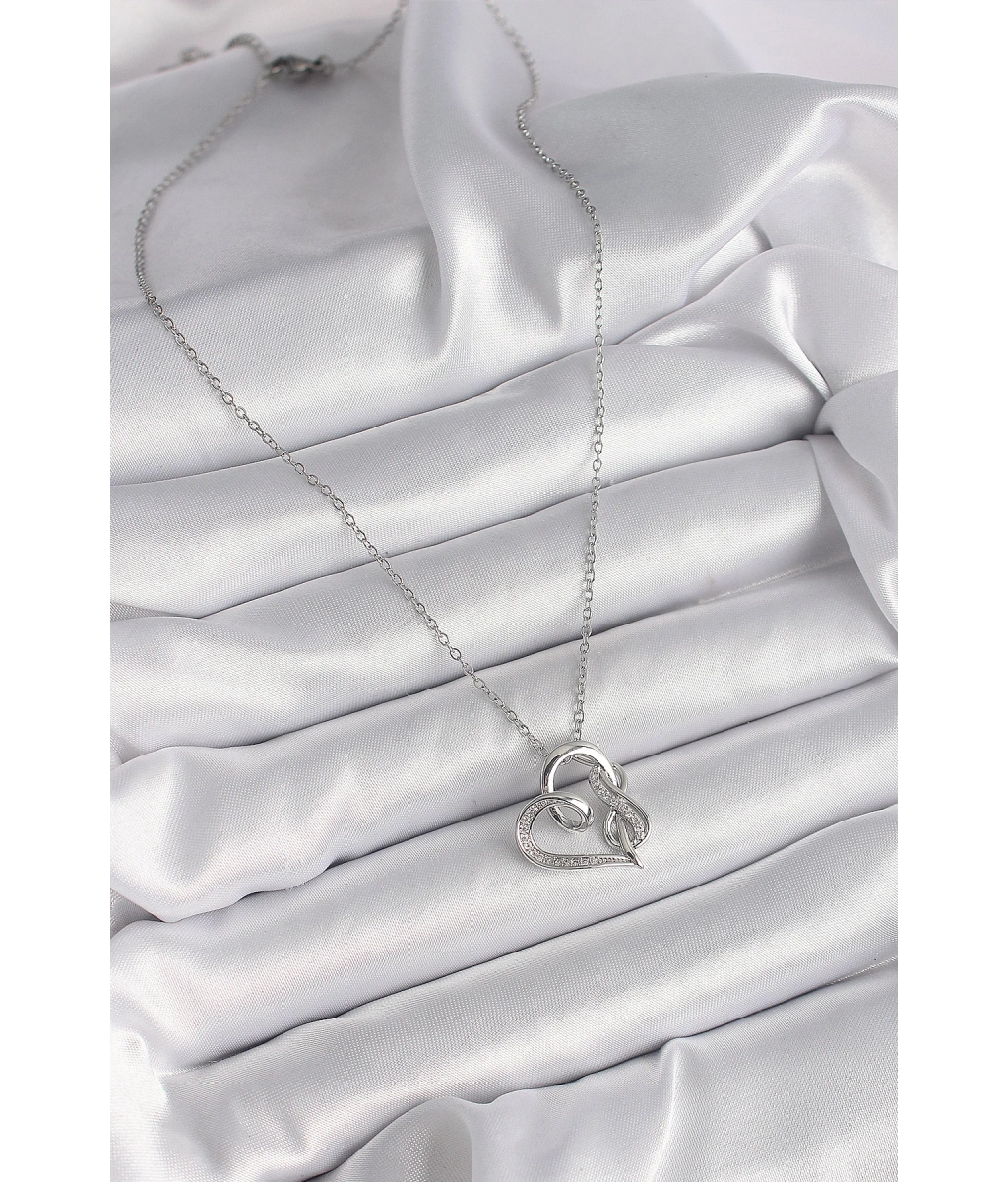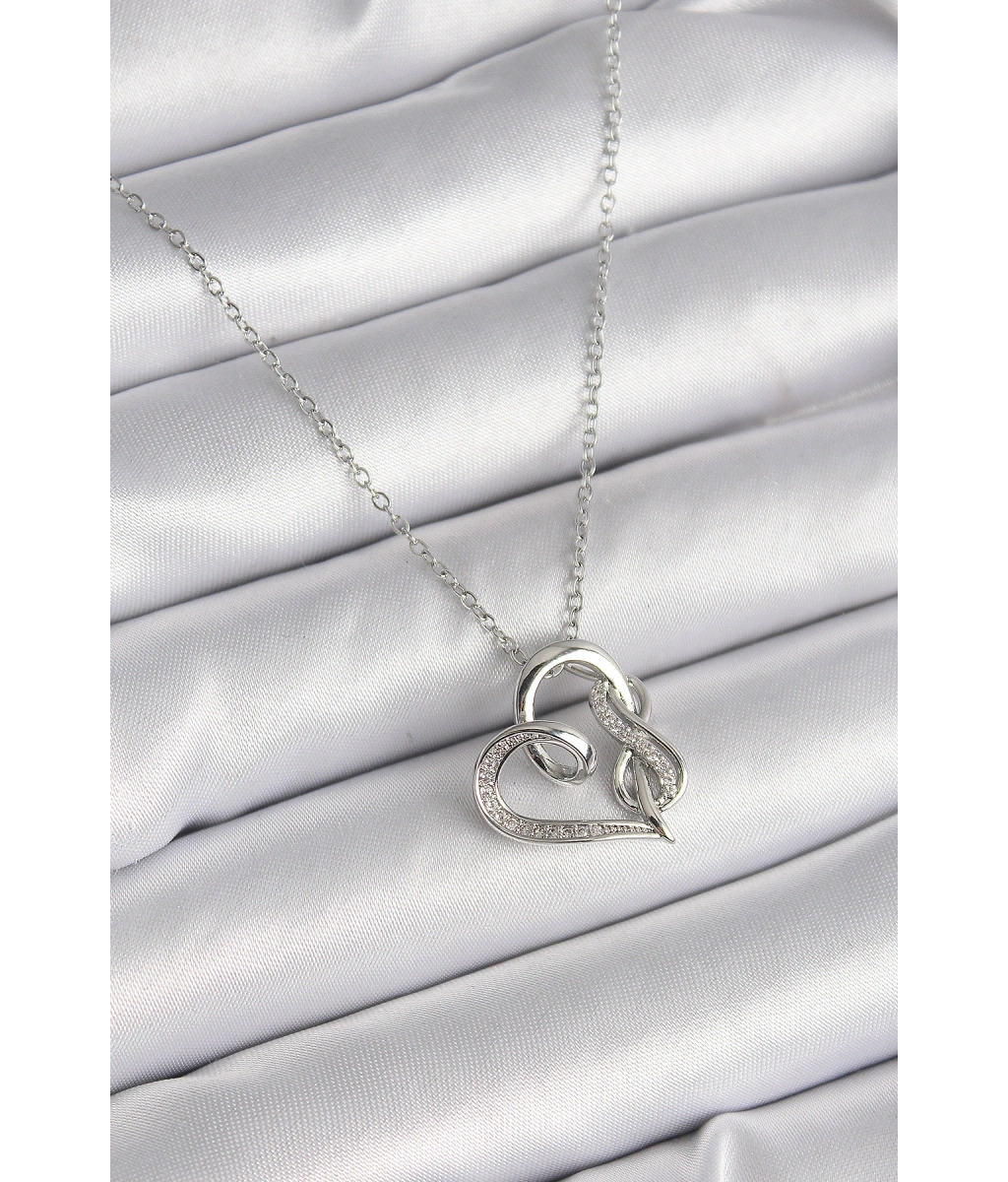 Shoecide 316l Çelik Gümüş Renk Zincir Zirkon Taş Detaylı Kalp Model Sonsuzluk Detay Kadın Kolye
