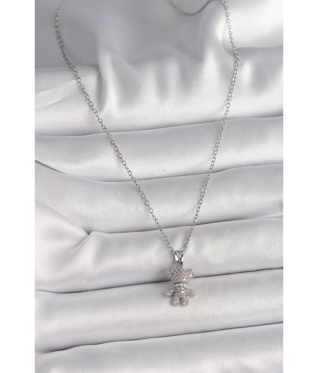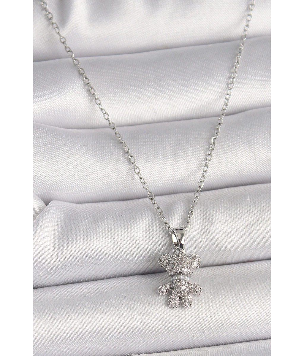 Shoecide 316l Çelik Gümüş Renk Zincir Zirkon Taşlı Ayıcık Figür Kadın Kolye