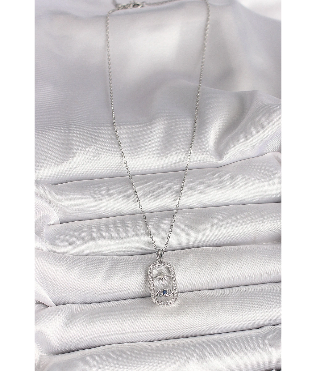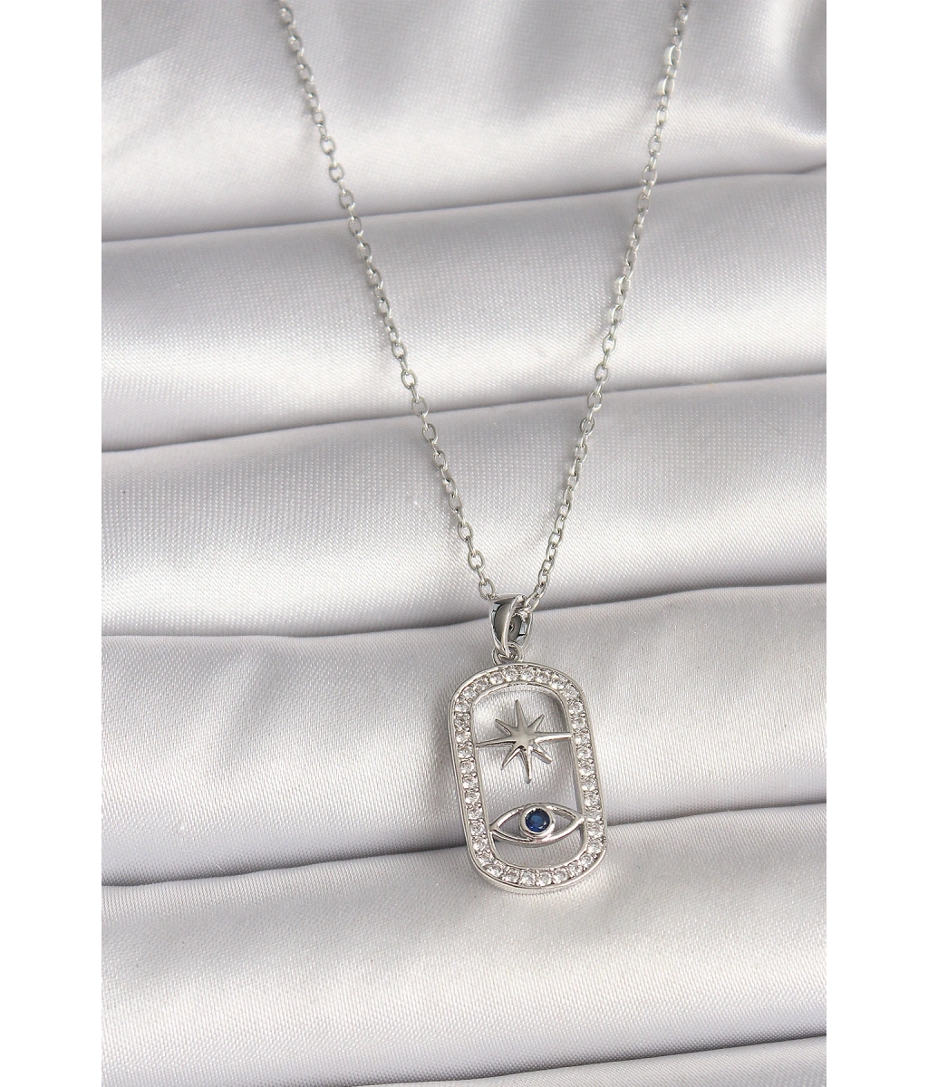 Shoecide 316l Çelik Gümüş Renk Zincir Zirkon Taşlı Göz Yıldız Model Kadın Kolye