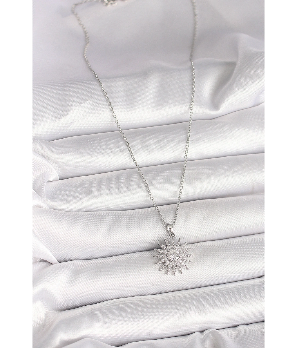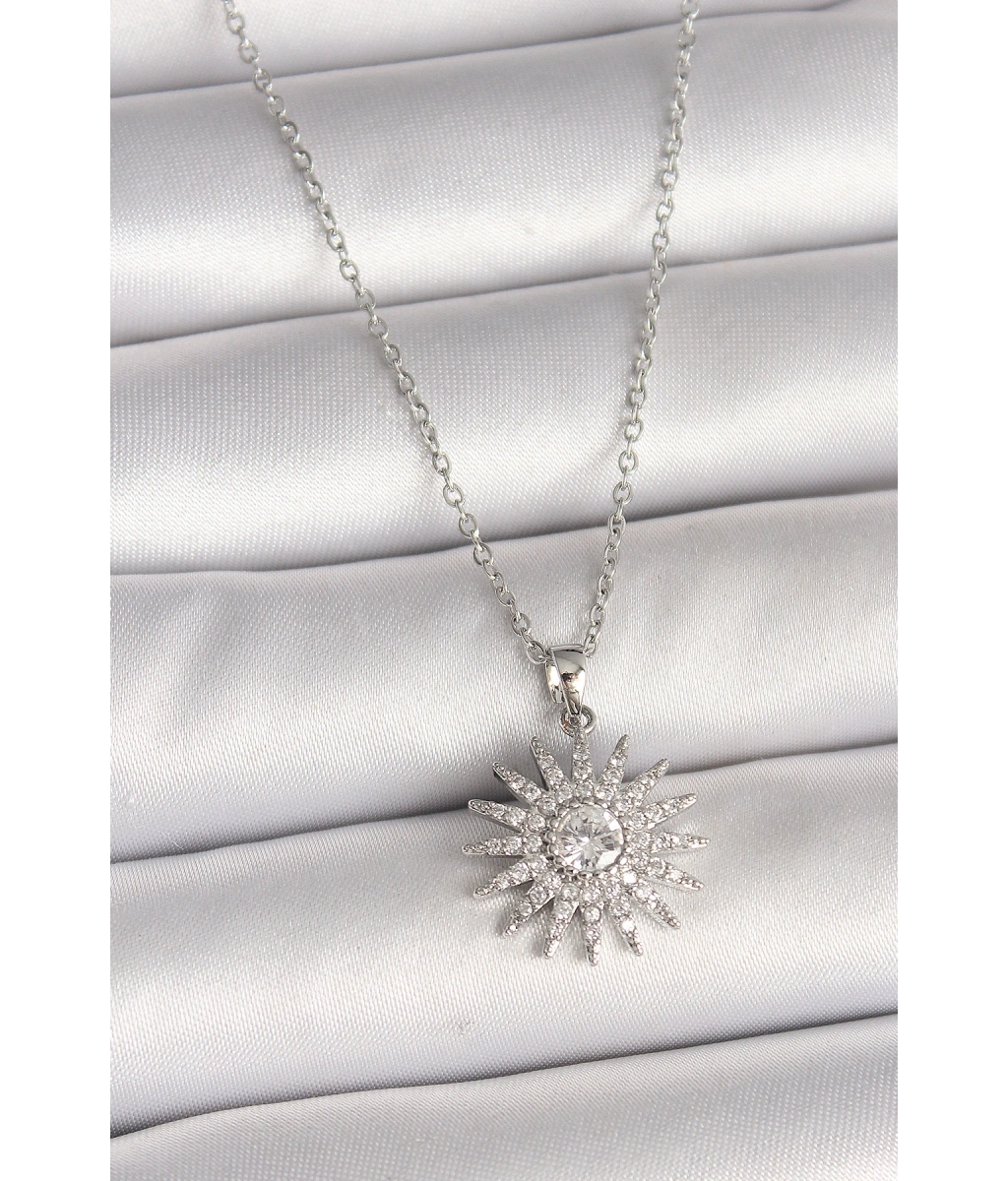 Shoecide 316l Çelik Gümüş Renk Zincir Zirkon Taşlı Güneş Model Kadın Kolye