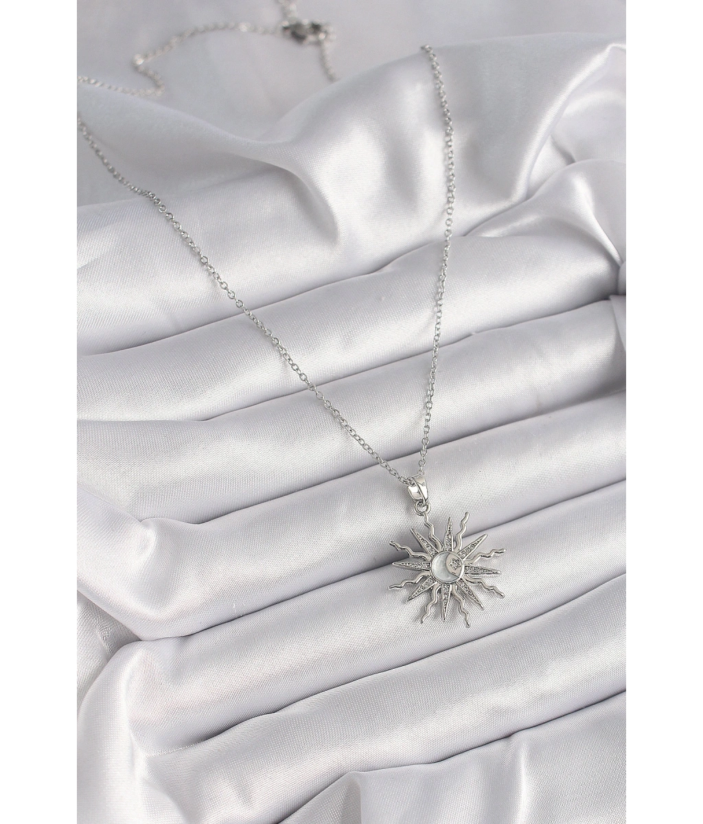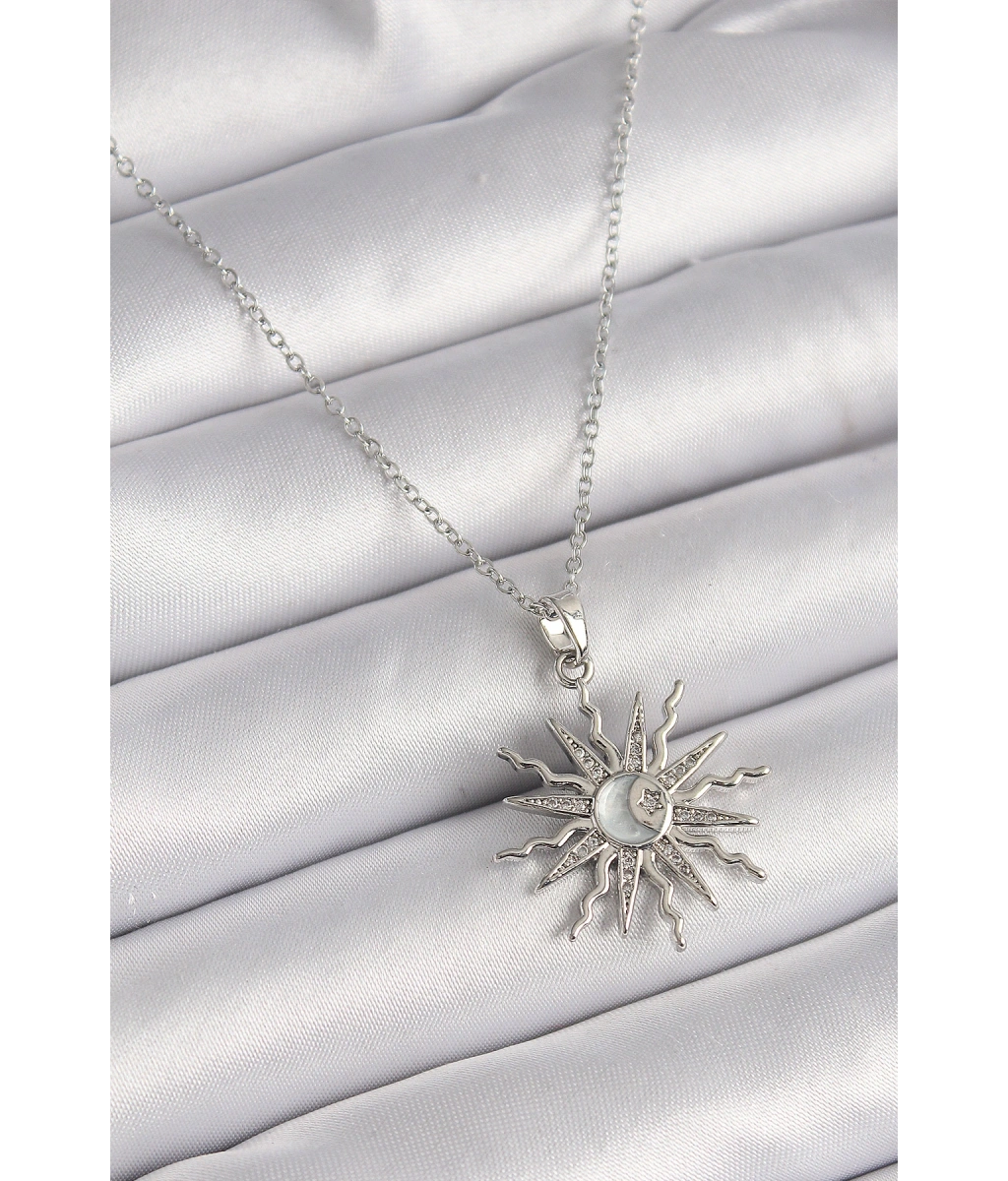 Shoecide 316l Çelik Gümüş Renk Zincir Zirkon Taşlı Güneş Model Sedefli Ay İşleme Detay Kadın Kolye