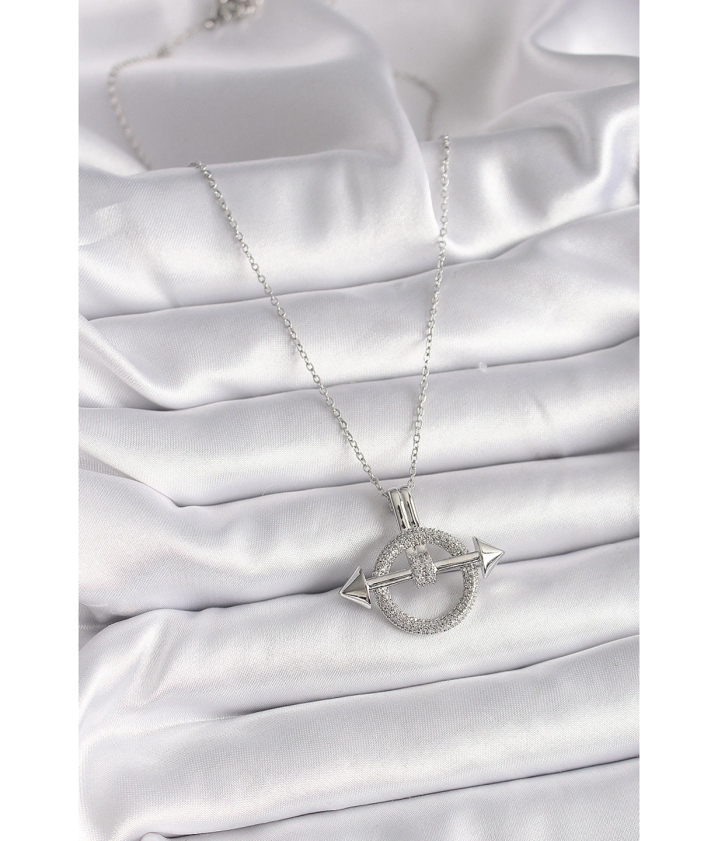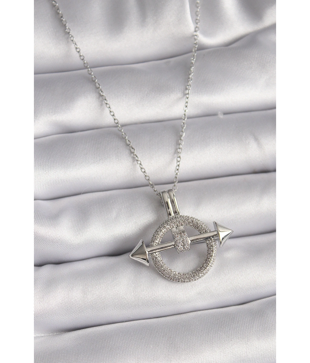 Shoecide 316l Çelik Gümüş Renk Zincir Zirkon Taşlı Halka Model Kadın Kolye