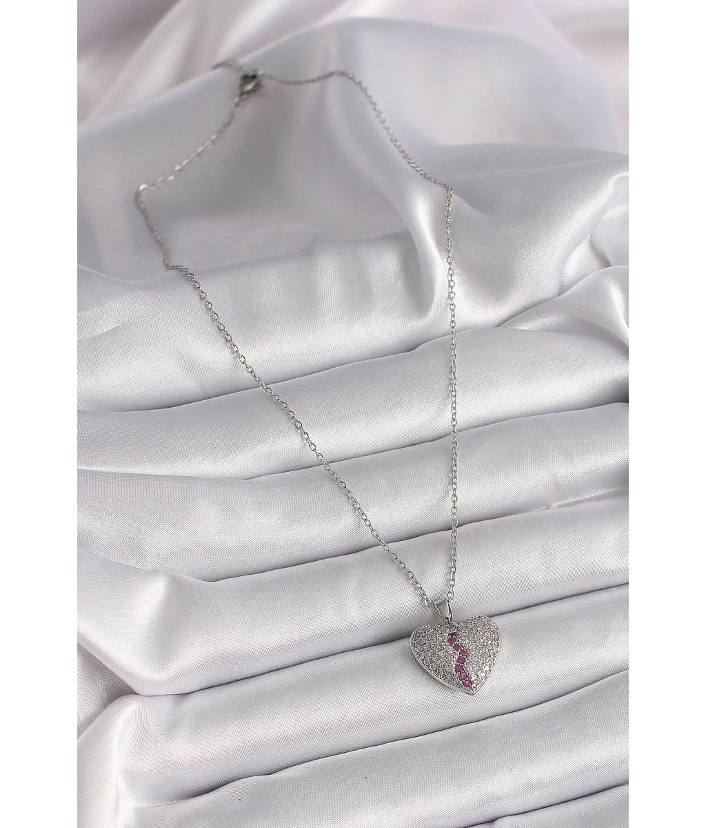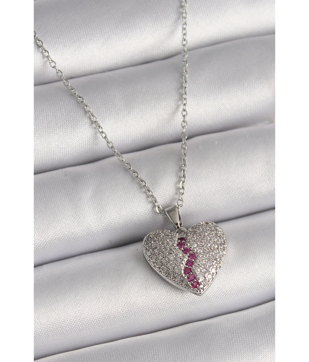 Shoecide 316l Çelik Gümüş Renk Zincir Zirkon Taşlı Kalp Model Kadın Kolye