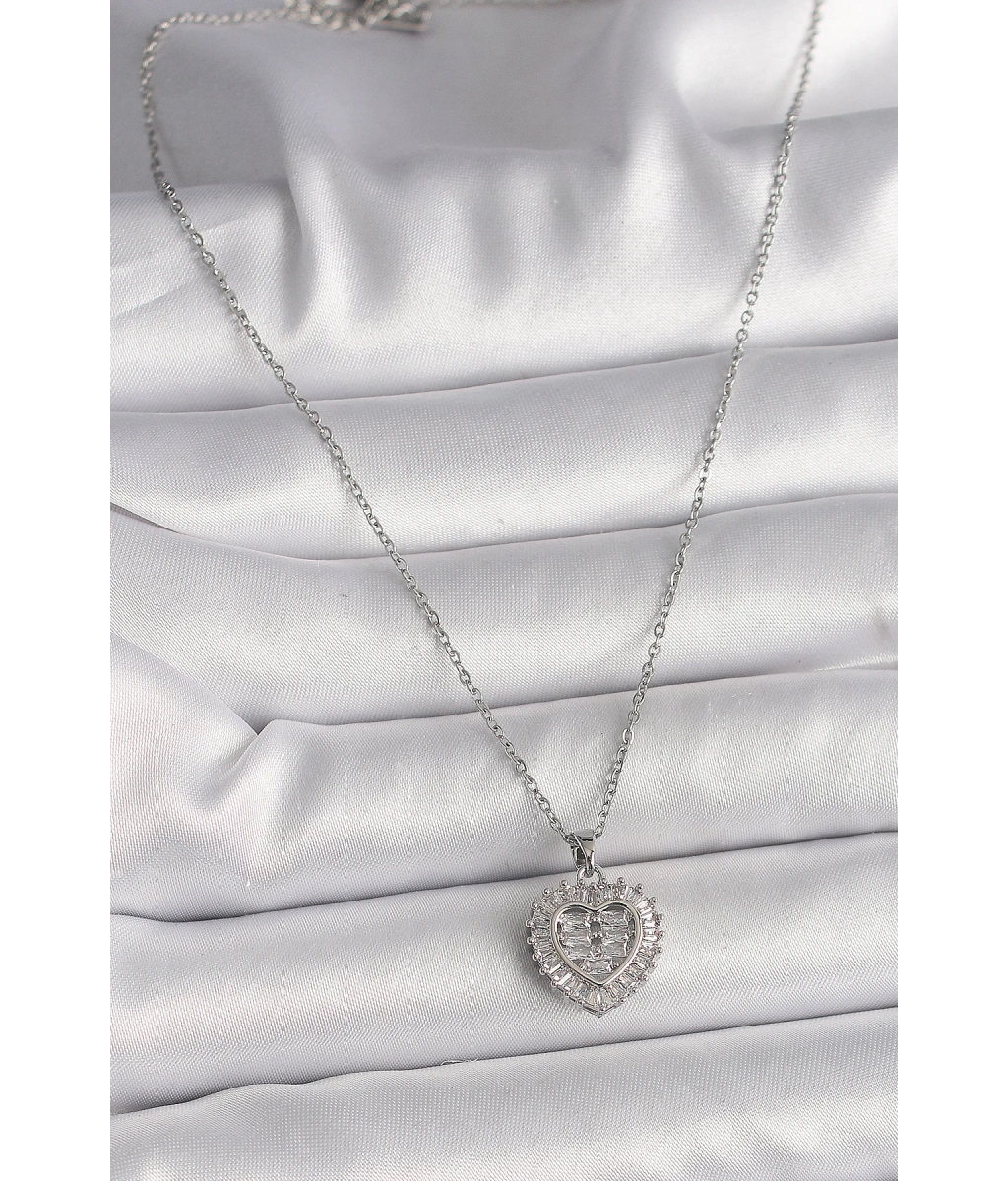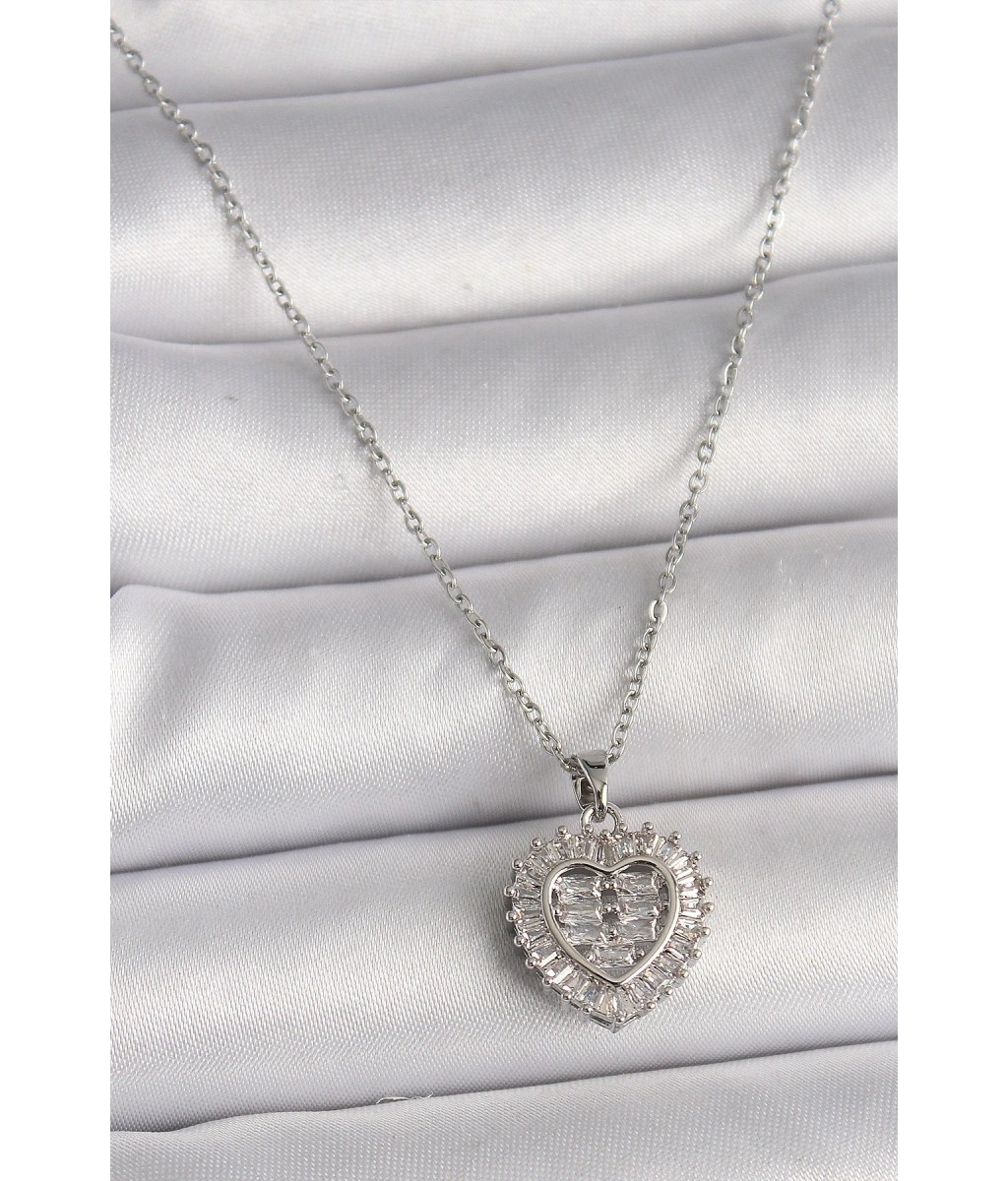 Shoecide 316l Çelik Gümüş Renk Zincir Zirkon Taşlı Kalp Model Kadın Kolye
