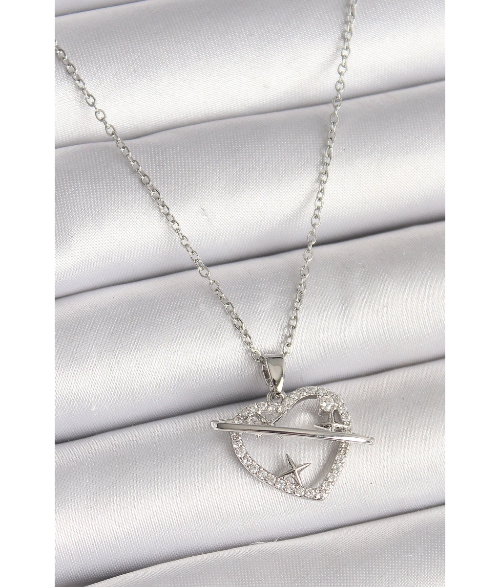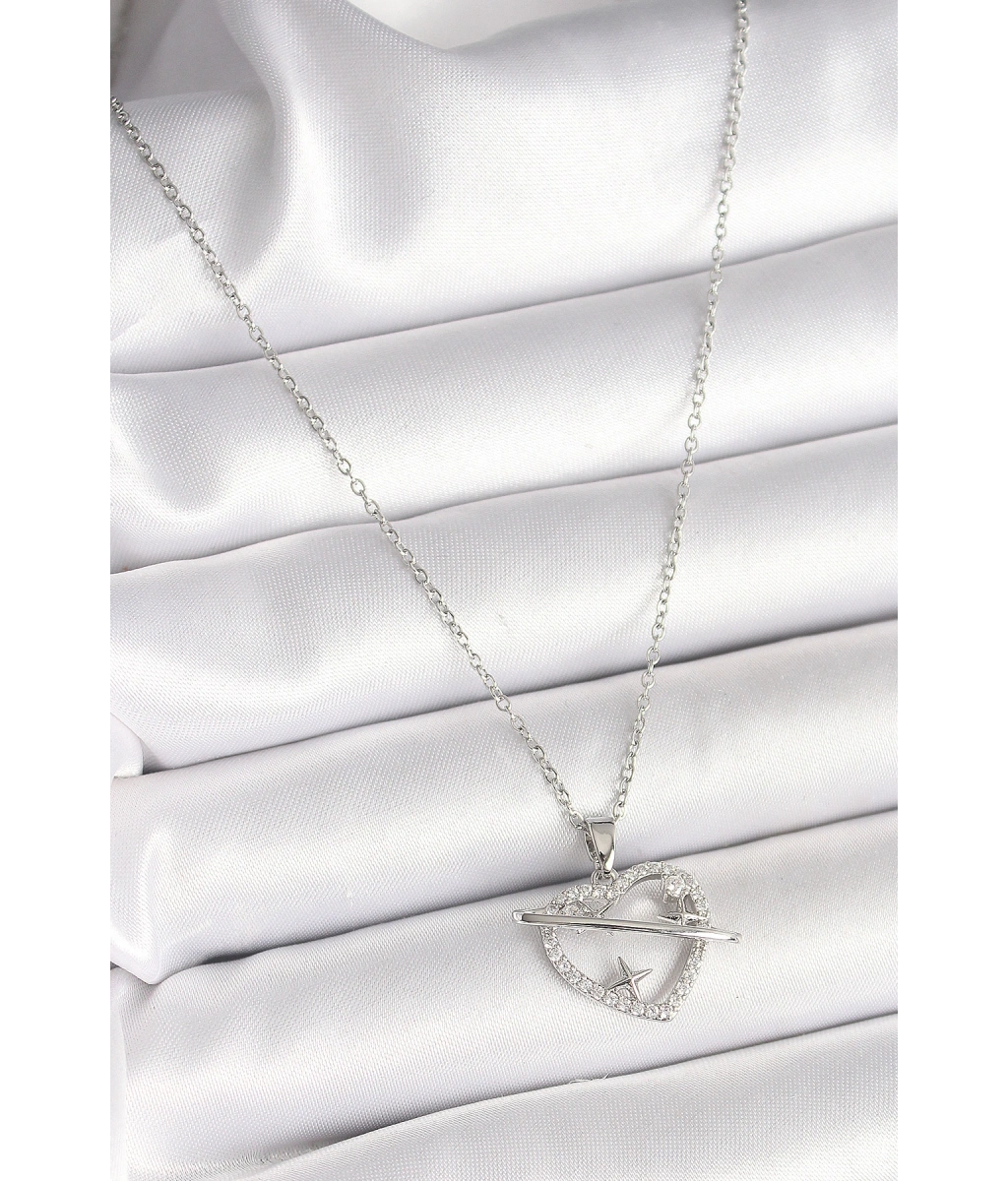 Shoecide 316l Çelik Gümüş Renk Zincir Zirkon Taşlı Kalp Model Yıldız Detay Kadın Kolye