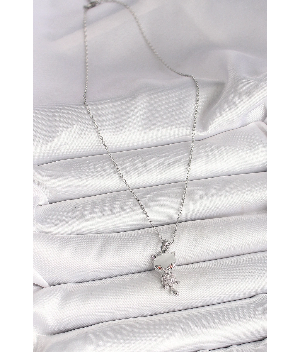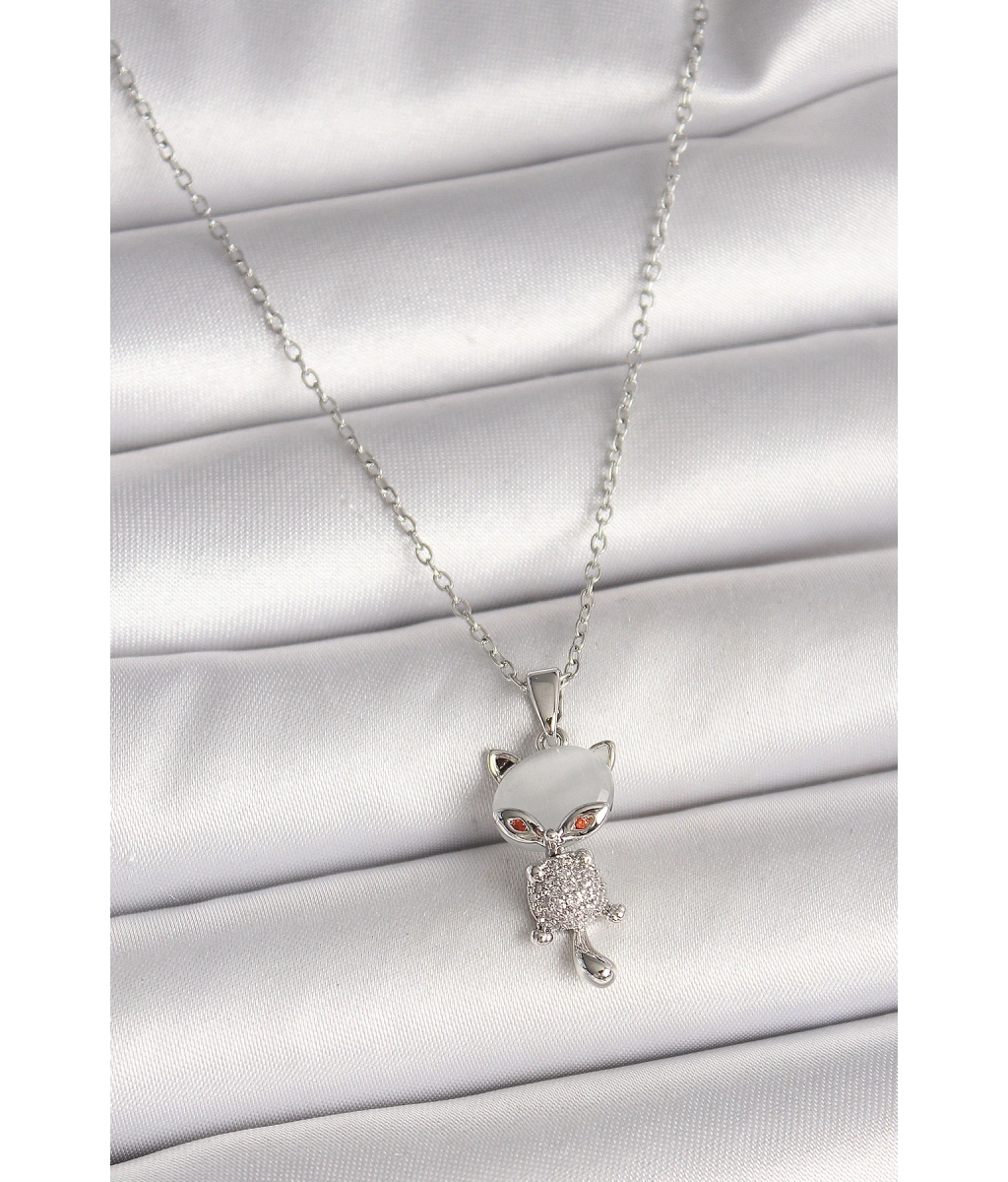 Shoecide 316l Çelik Gümüş Renk Zincir Zirkon Taşlı Kedi Model Kadın Kolye