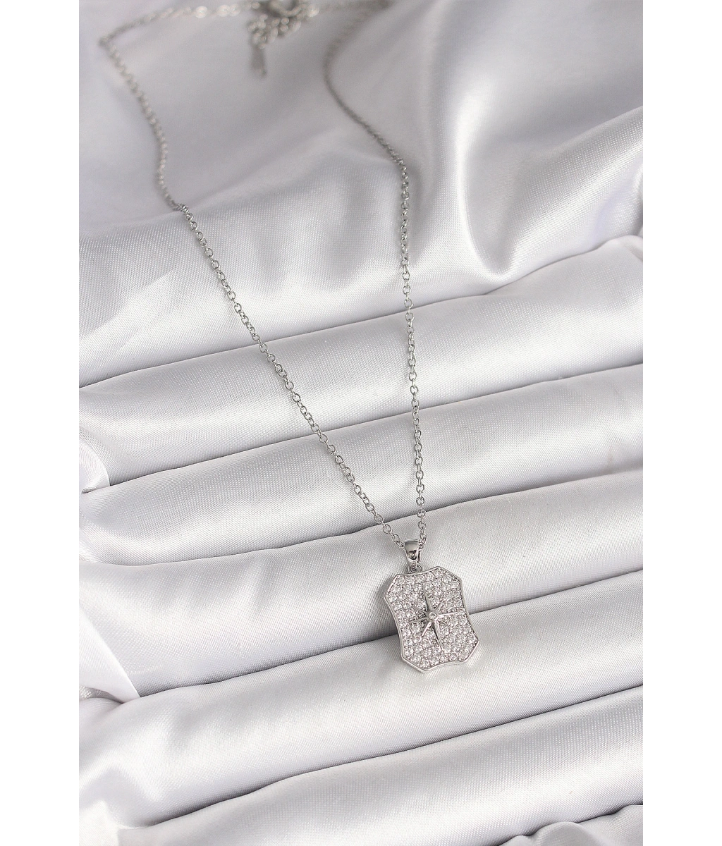 Shoecide 316l Çelik Gümüş Renk Zincir Zirkon Taşlı Kutup Yıldız İşlemeli Madalyon Model Kadın Kolye