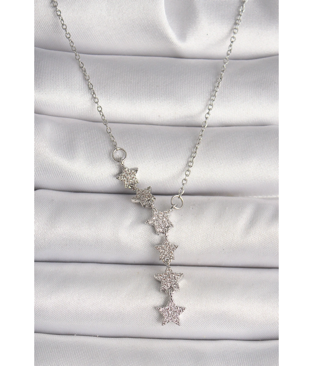 Shoecide 316l Çelik Gümüş Renk Zincir Zirkon Taşlı Yıldız Model Kadın Kolye