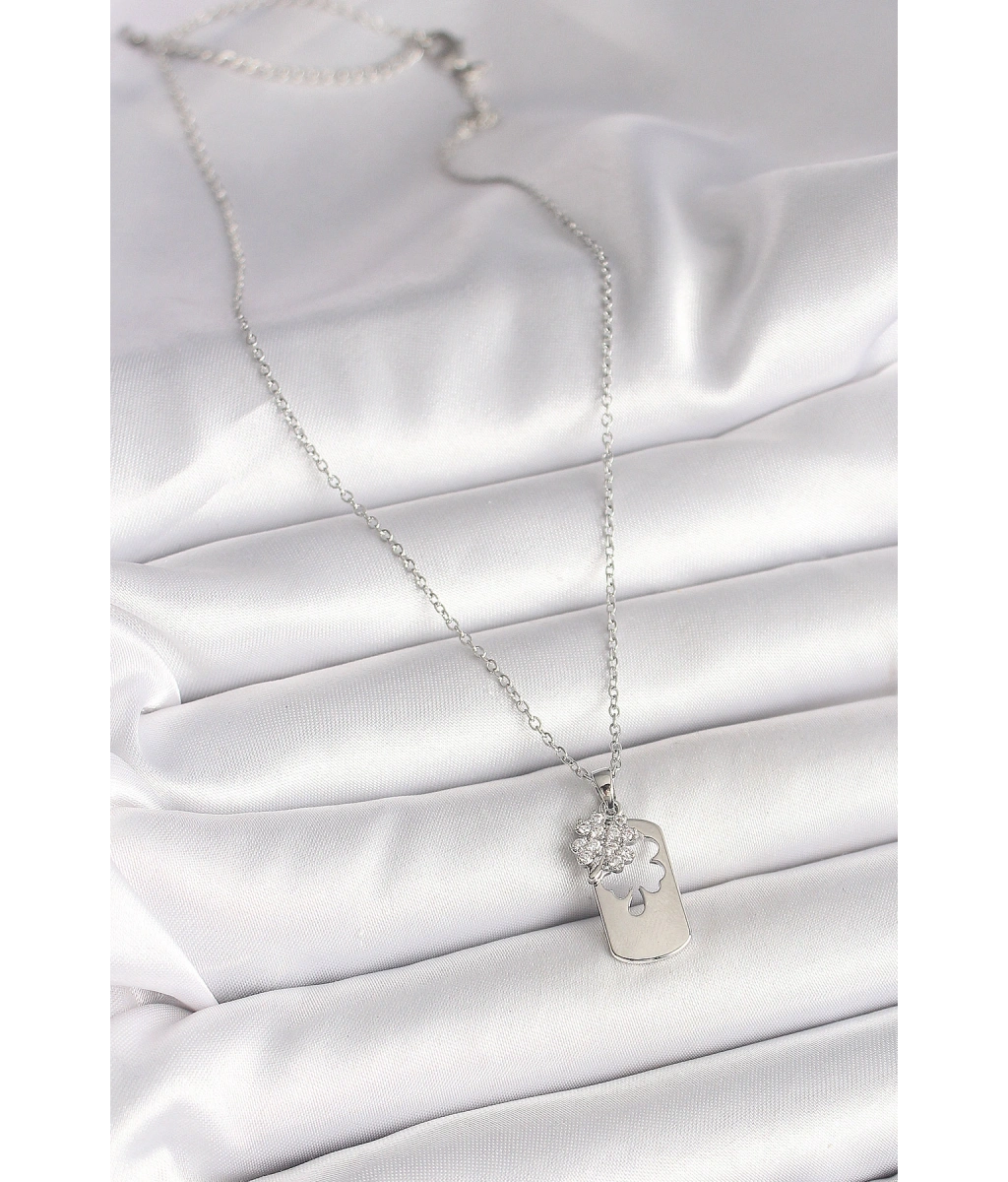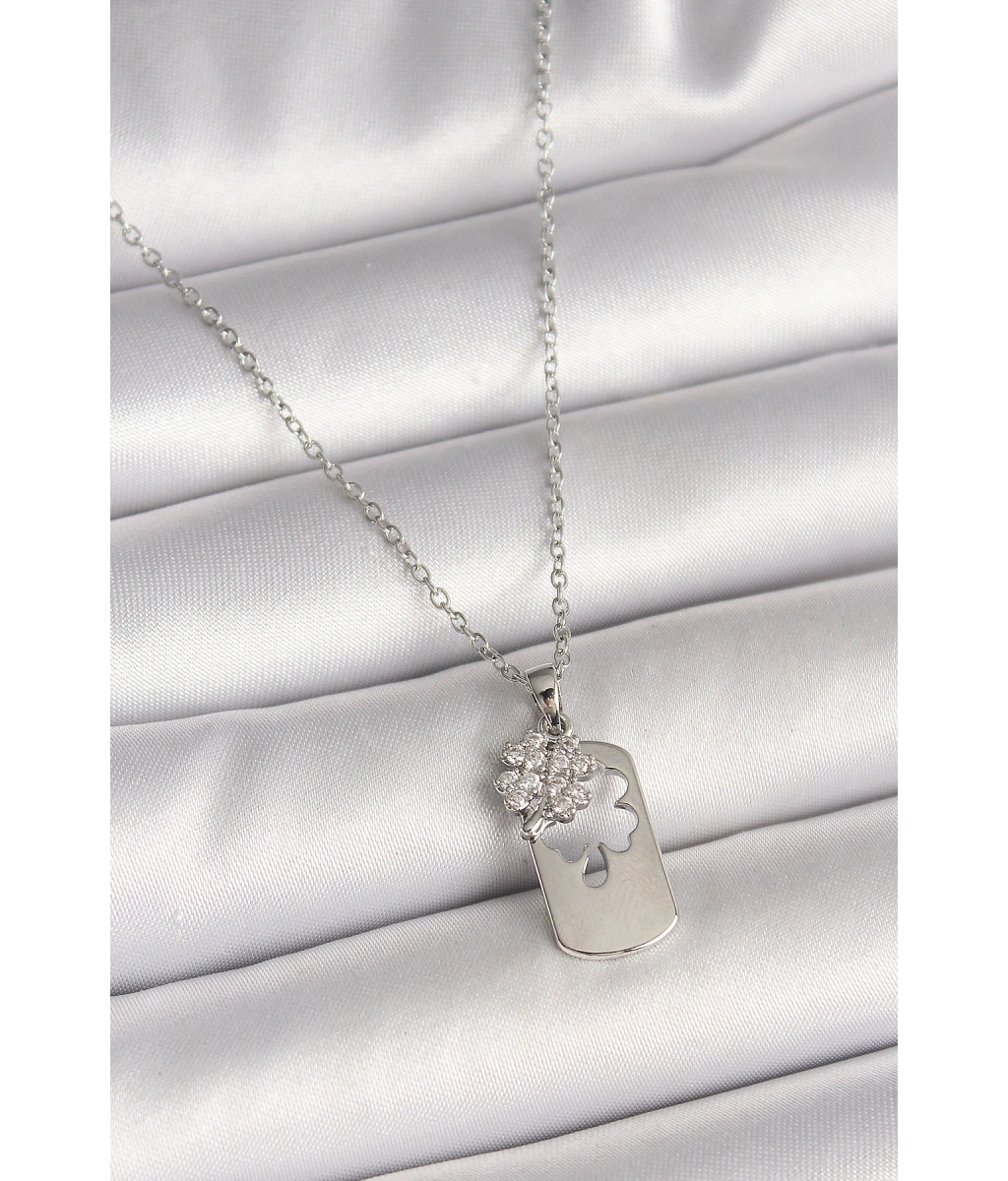 Shoecide 316l Çelik Gümüş Renk Zincir Zirkon Taşlı Yonca Model Kadın Kolye