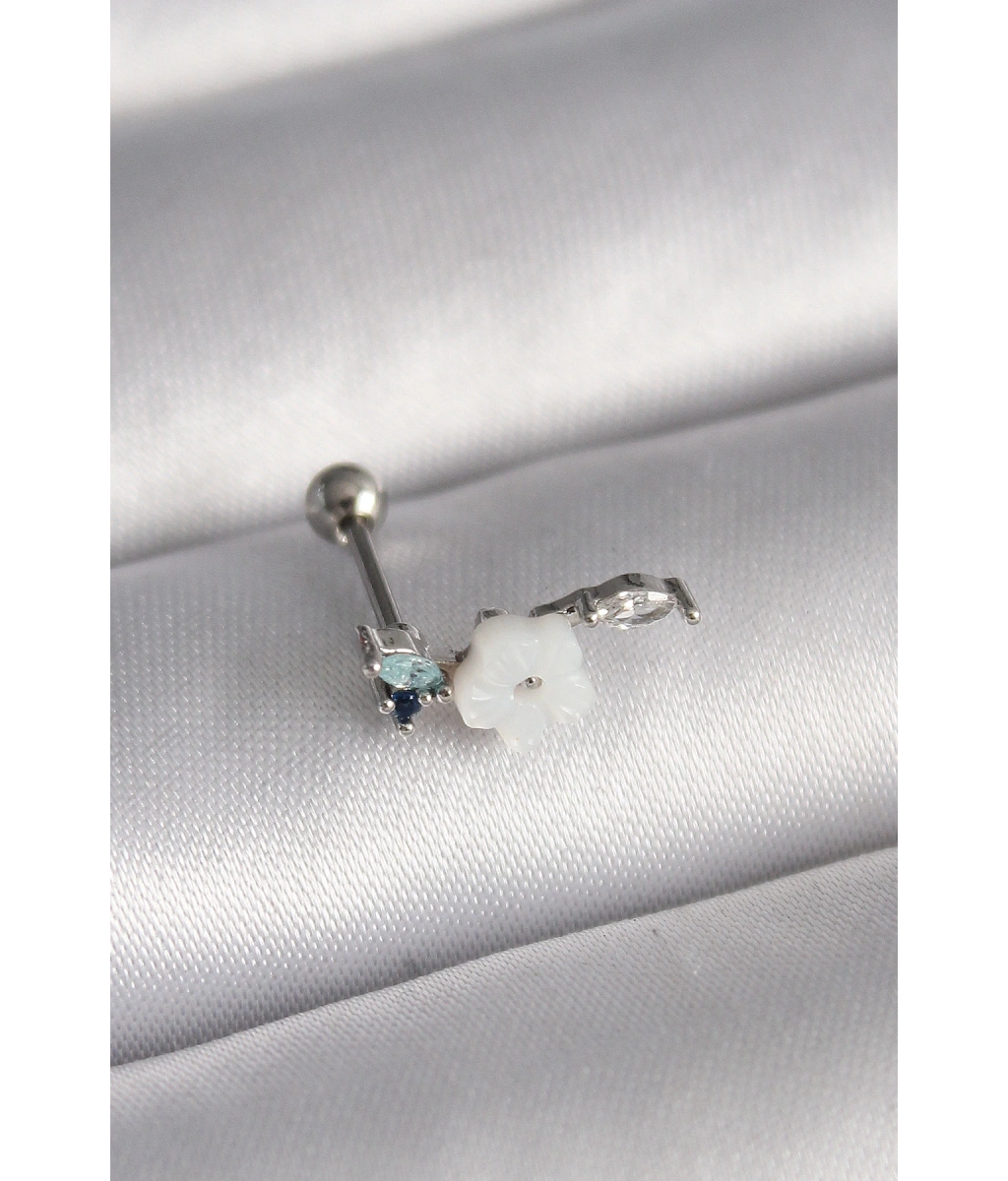 Shoecide 316l Çelik Gümüş Renk Zirkon Taş Detay Beyaz Çiçek Model Tragus Piercing
