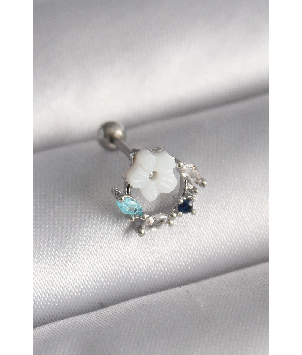 Shoecide 316l Çelik Gümüş Renk Zirkon Taş Detay Beyaz Çiçek Model Tragus Piercing