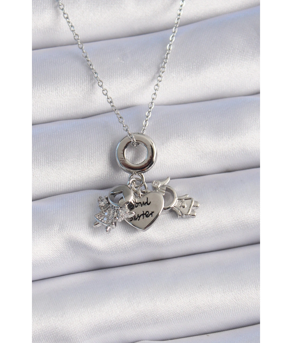 Shoecide Pirinç Gümüş Renk Kalp Model Kadın Kolye