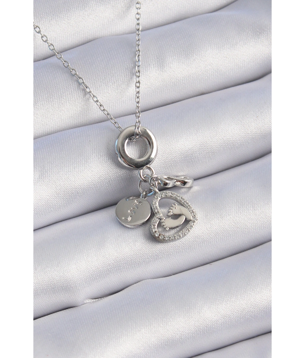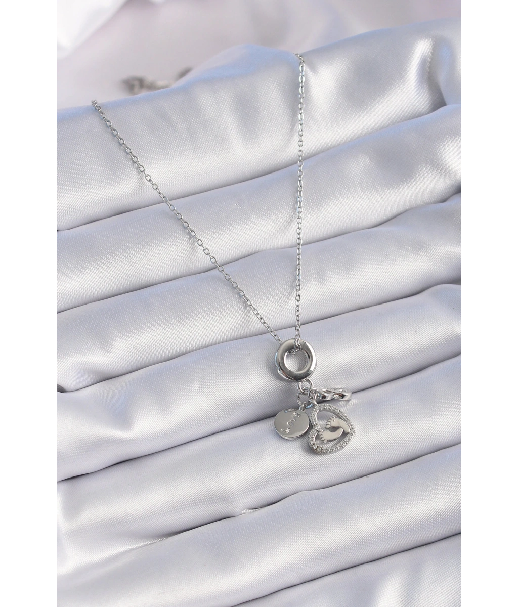 Shoecide 316l Çelik Gümüş Renk Zirkon Taş Detay Kalp Model Charm Kadın Kolye