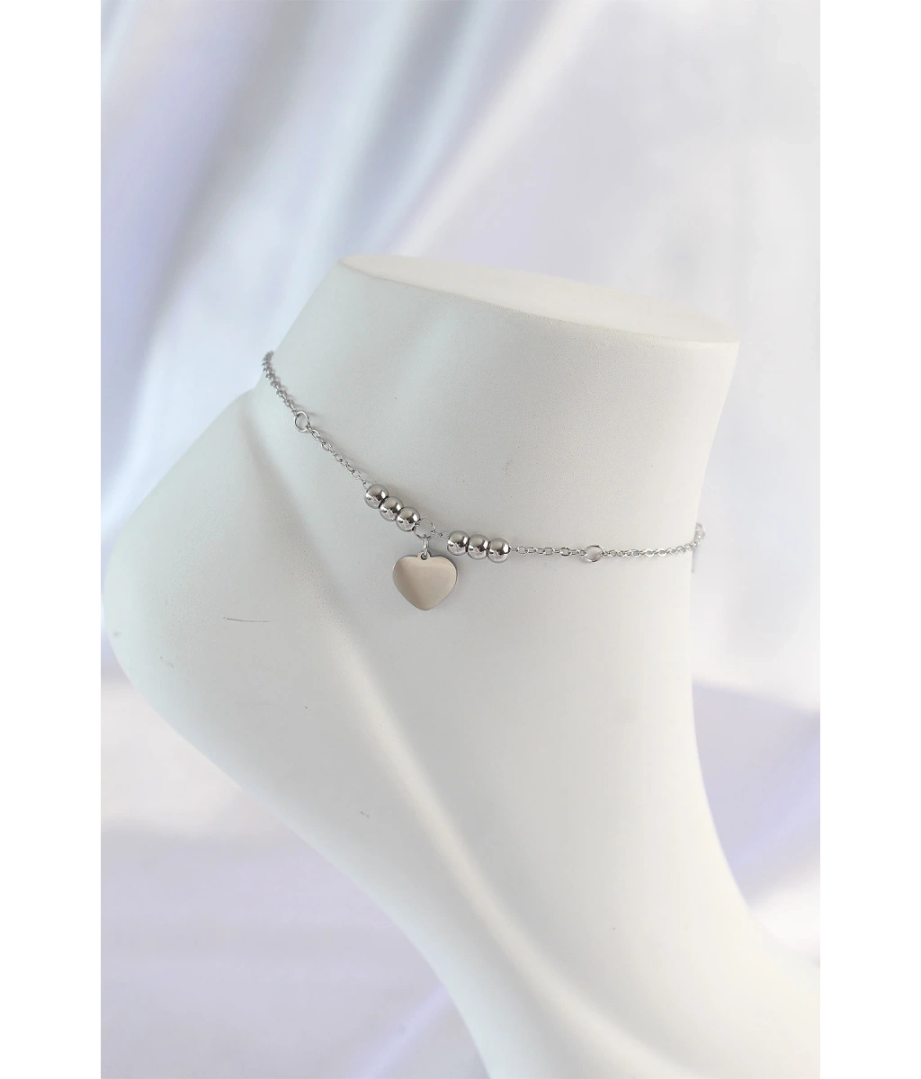 Shoecide 316l Çelik Gümüş Renk Kalp Tasarımlı Halhal