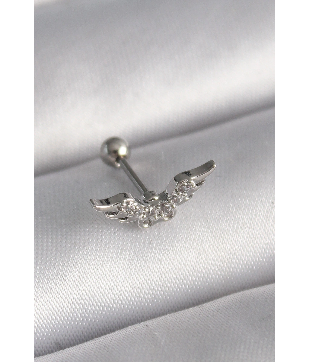 Shoecide 316l Çelik Gümüş Renk Zirkon Taş Detay Kanat Model Tragus Piercing