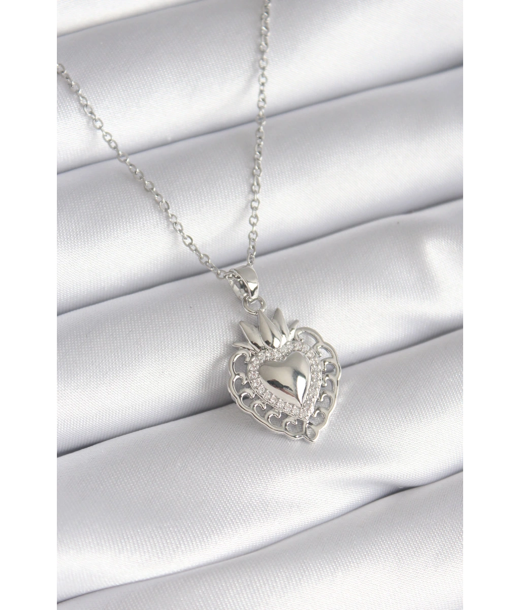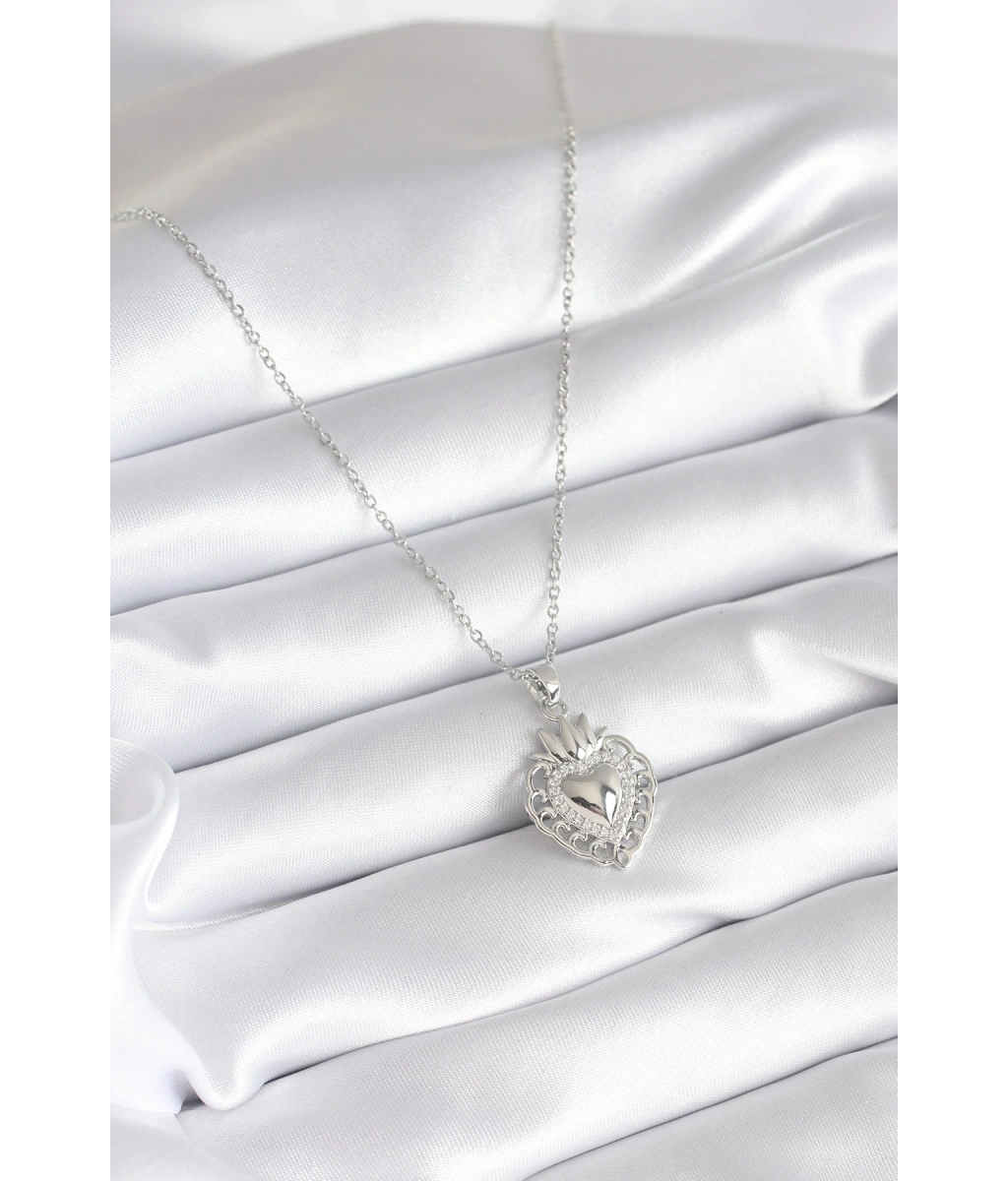 Shoecide 316l Çelik Gümüş Renk Zirkon Taş Detay Taç Kalp Model Kadın Kolye