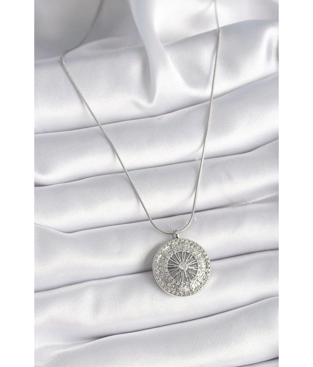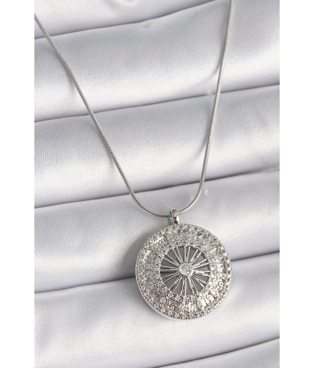 Shoecide 316l Çelik Gümüş Renk Zirkon Taşlı 12 Burç Madalyon Model Kadın Kolye