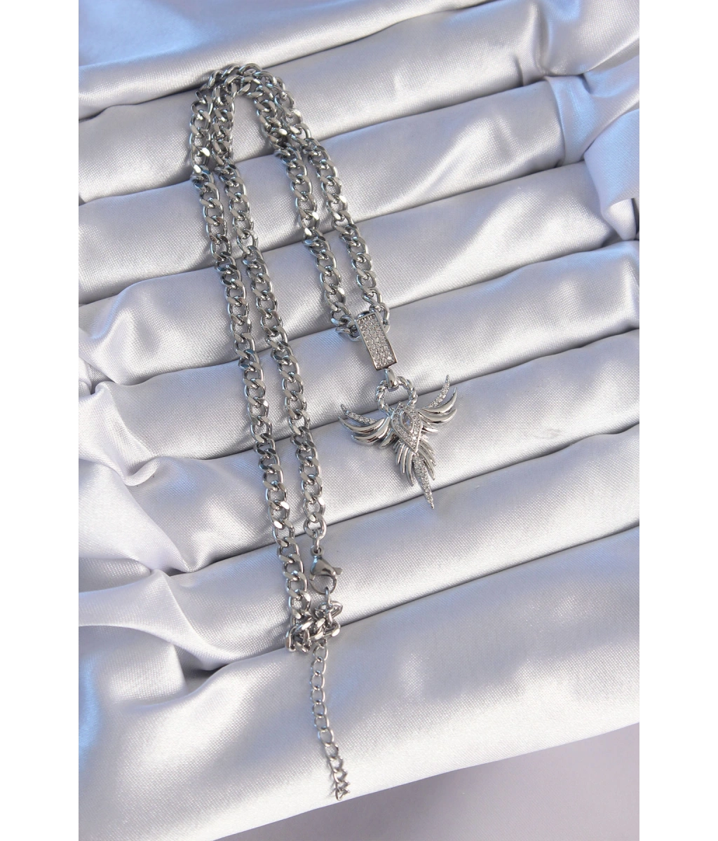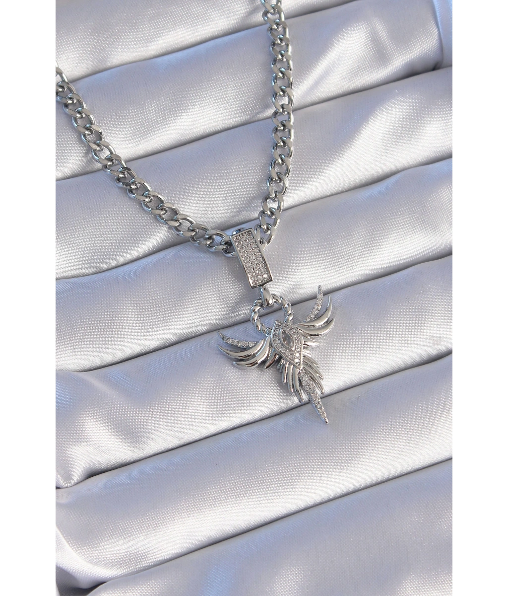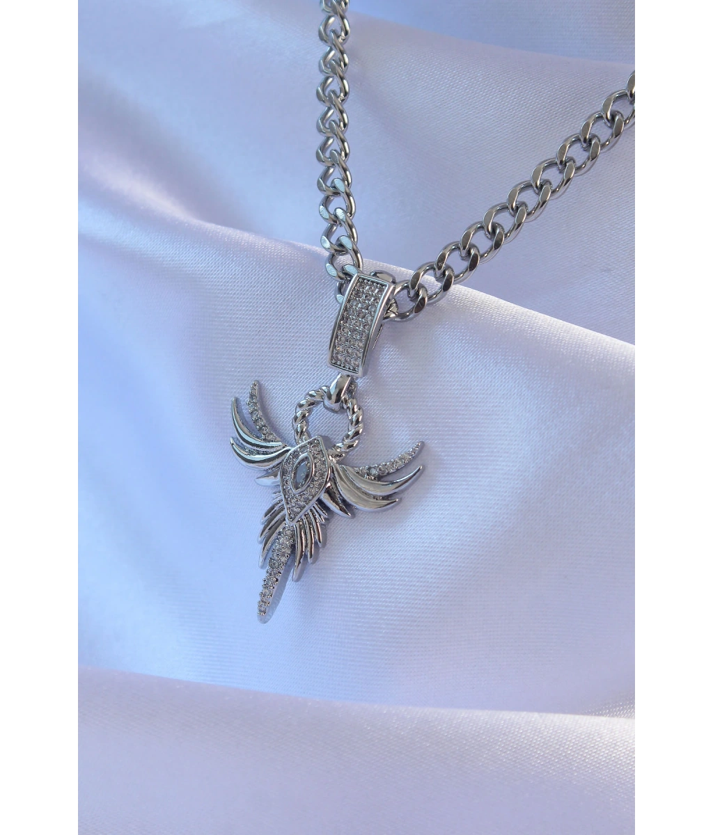 Shoecide 316l Çelik Gümüş Renk Zirkon Taşlı Anka Kuşu Model Kolye