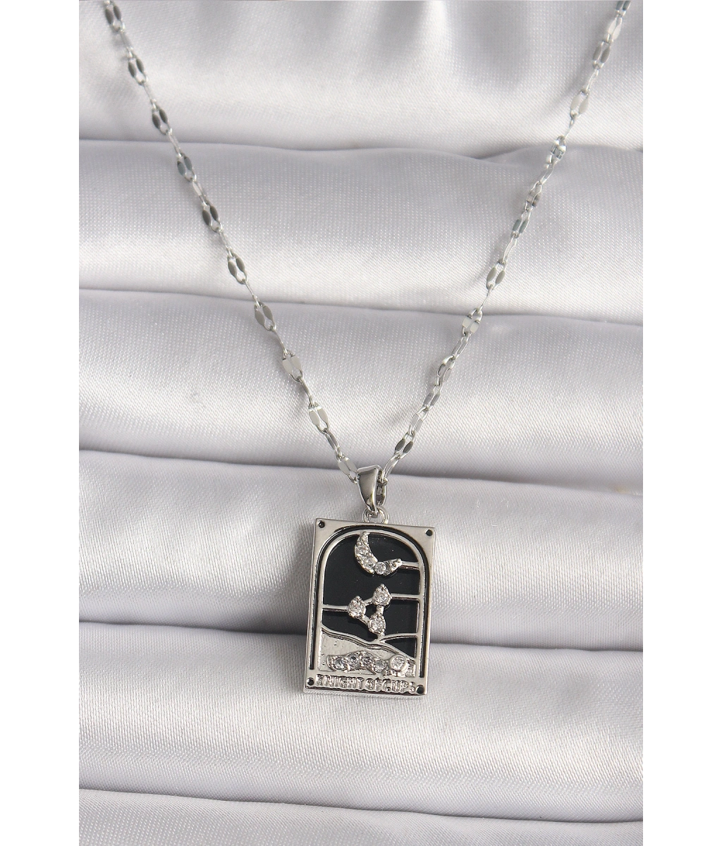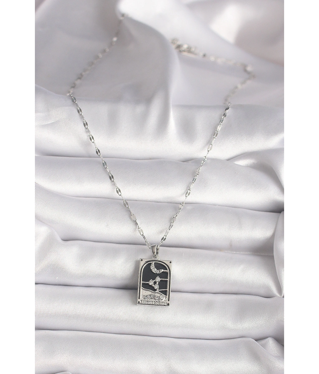 Shoecide 316l Çelik Gümüş Renk Zirkon Taşlı Ay Figürlü Taror Model Kadın Kolye