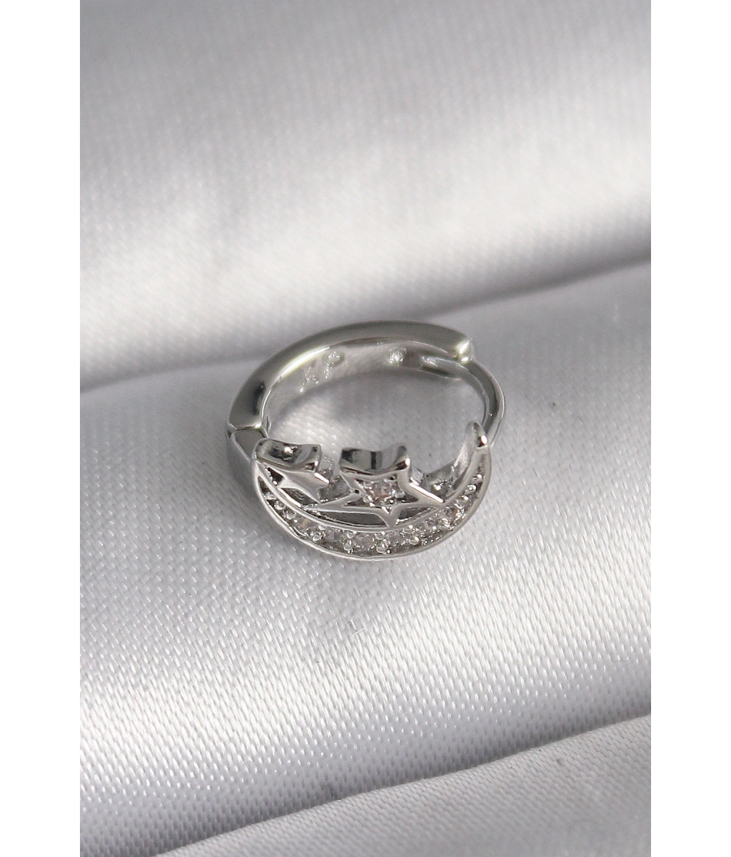 Shoecide 316l Çelik Gümüş Renk Zirkon Taşlı Ay Yıldız Model Tragus Piercing