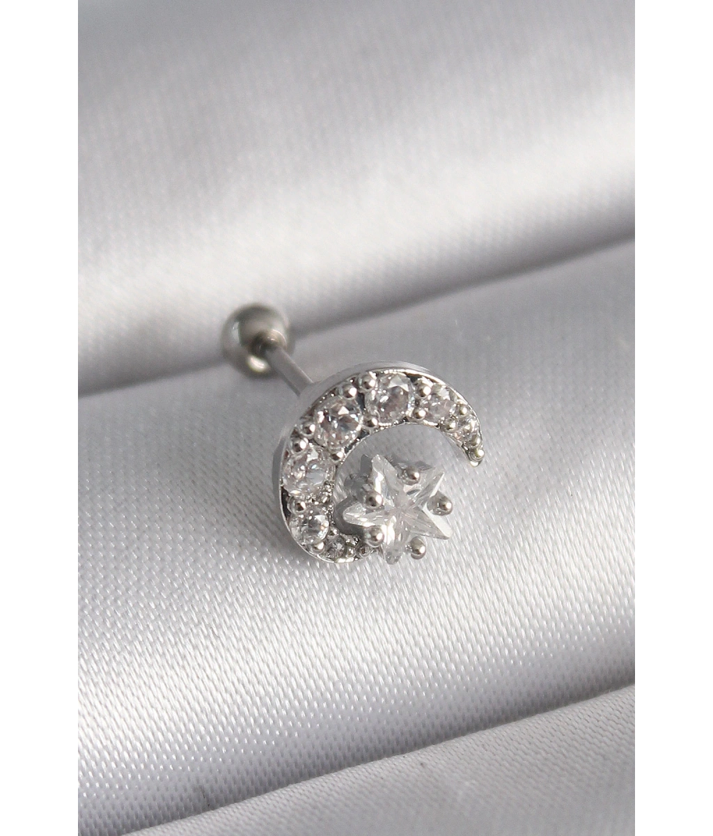 Shoecide 316l Çelik Gümüş Renk Zirkon Taşlı Ay Yıldız Tragus Piercing