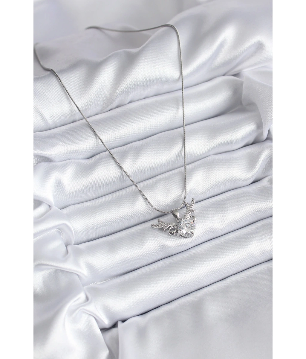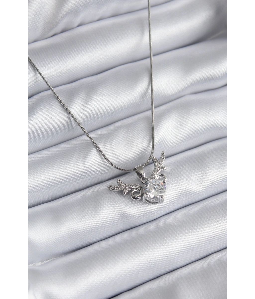 Shoecide 316l Çelik Gümüş Renk Zirkon Taşlı Boynuz Model Kadın Kolye