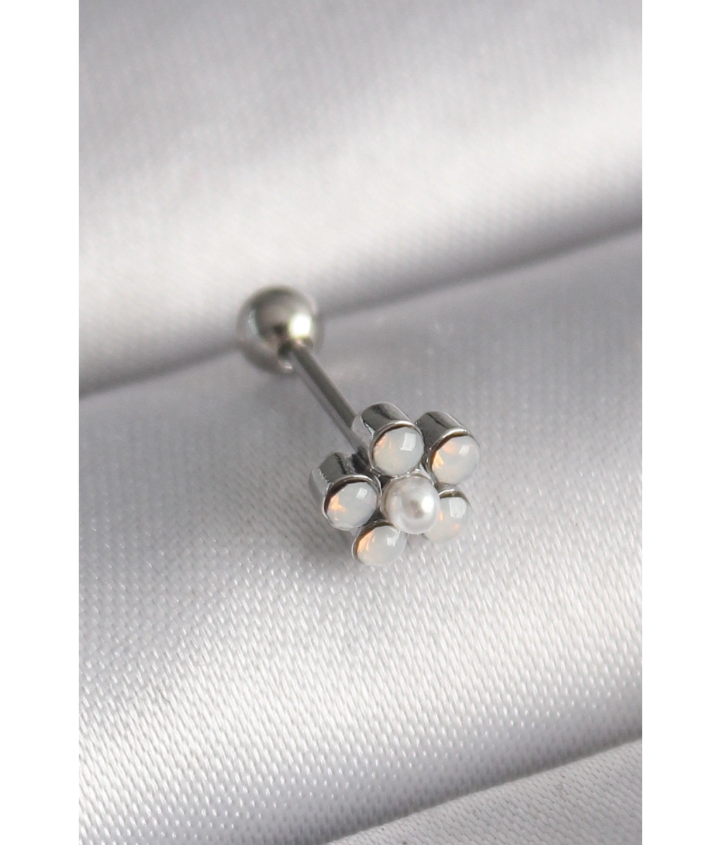 Shoecide 316l Çelik Gümüş Renk Zirkon Taş Detay Beyaz Çiçek Model Tragus Piercing