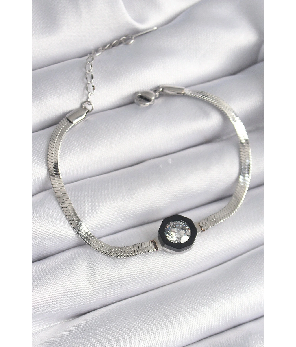 Shoecide 316l Çelik Gümüş Renk Zirkon Taşlı İtalyan Zincir Model Kadın Bileklik