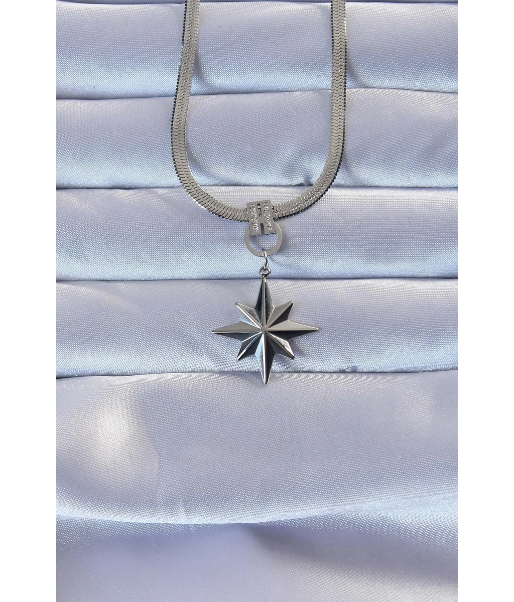 Shoecide Pirinç Gümüş Renk Zirkon Taşlı Kutup Yıldızı Model Kadın Kolye