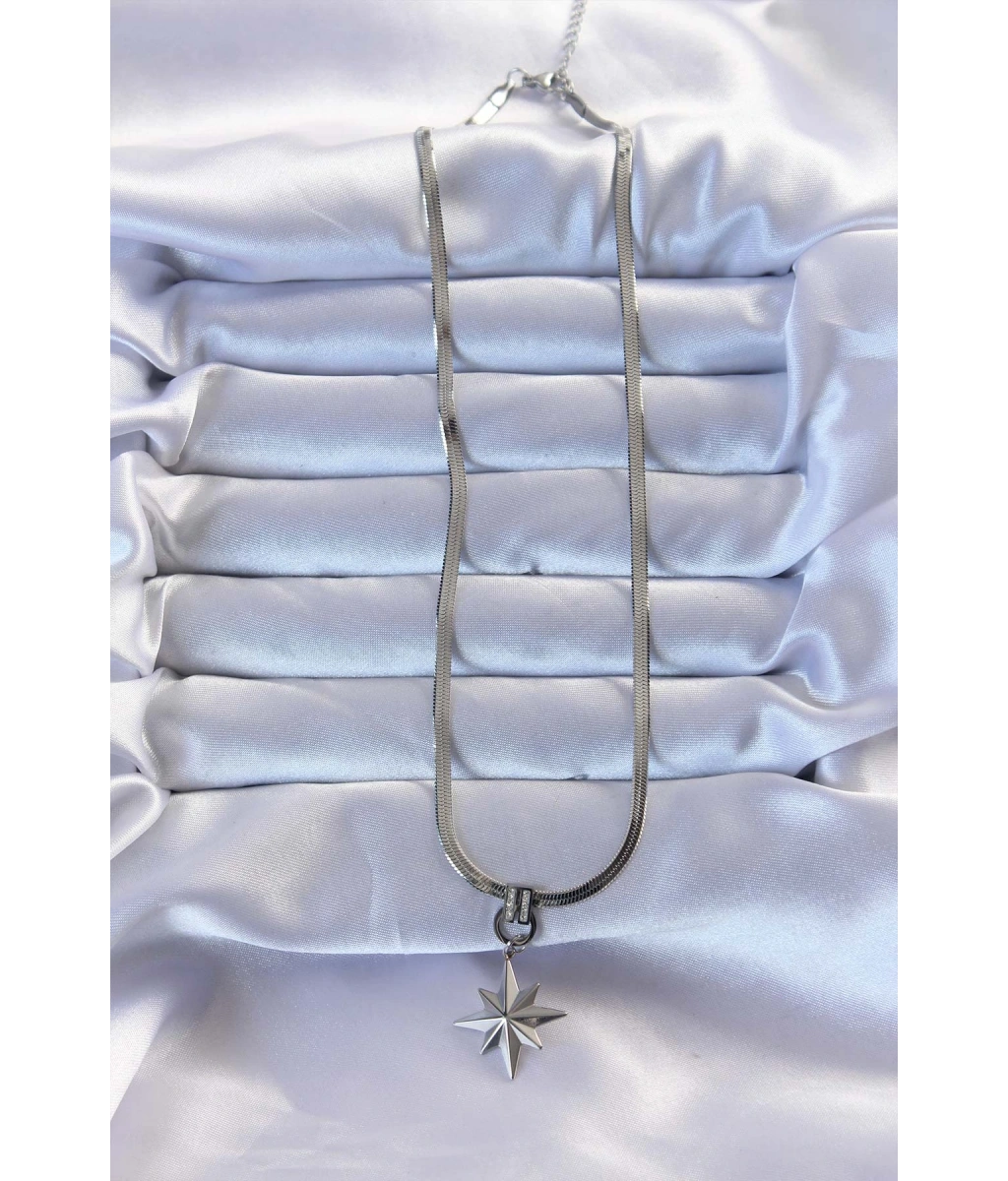 Shoecide Pirinç Gümüş Renk Yıldız Model Kadın Kolye