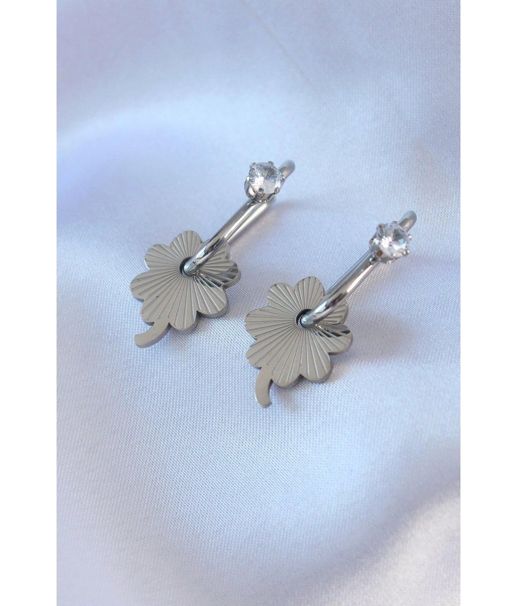Shoecide 316l Çelik Gümüş Renk Zirkon Taşlı Kadın Göçmen Küpesi
