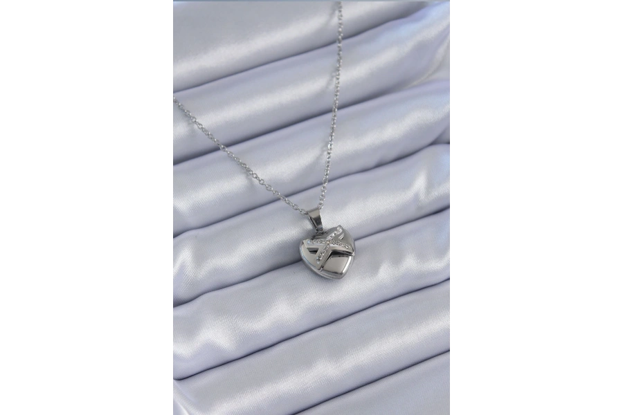 Shoecide 316l Çelik Gümüş Renk Zirkon Taşlı Kalp Model Kadın Kolye