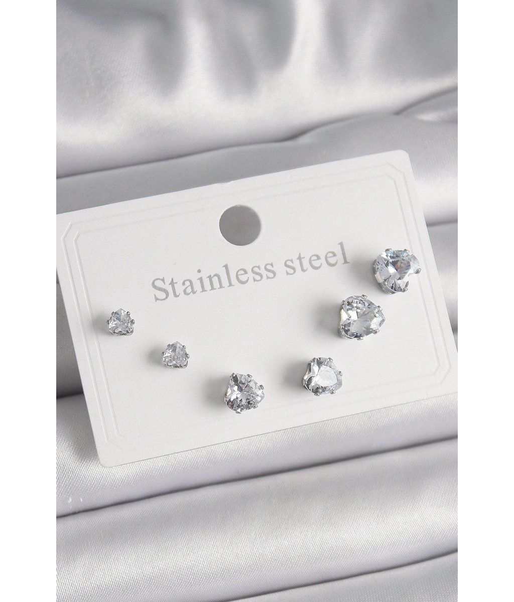 Shoecide 316l Çelik Gümüş Renk Zirkon Taşlı Kalp Model Kadın Küpe Seti
