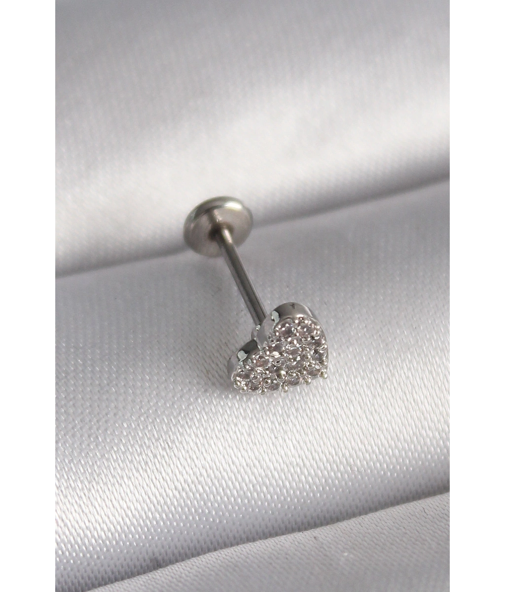 Shoecide 316l Çelik Gümüş Renk Zirkon Taşlı Kalp Model Tragus Piercing