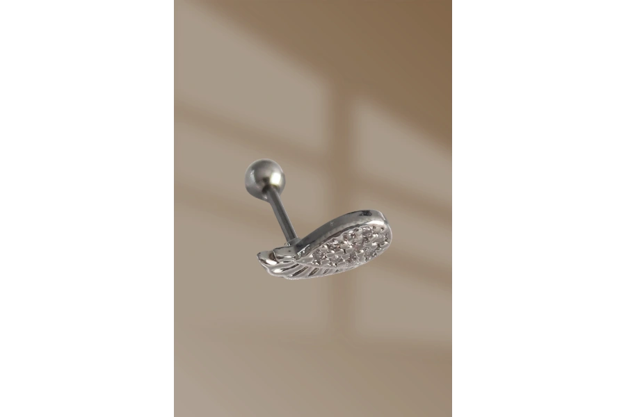 Shoecide 316l Çelik Gümüş Renk Zirkon Taşlı Kanat Tragus Piercing