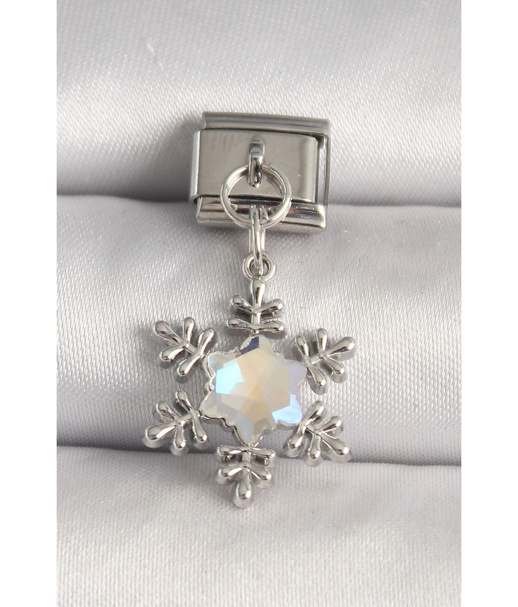 Shoecide 316l Çelik Gümüş Renk Zirkon Taşlı Kar Tanesi Model Nomination Charm