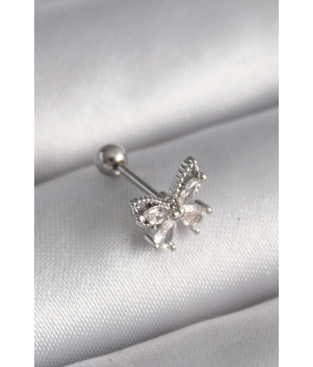 Shoecide 316l Çelik Gümüş Renk Zirkon Taşlı Kelebek Tragus Piercing