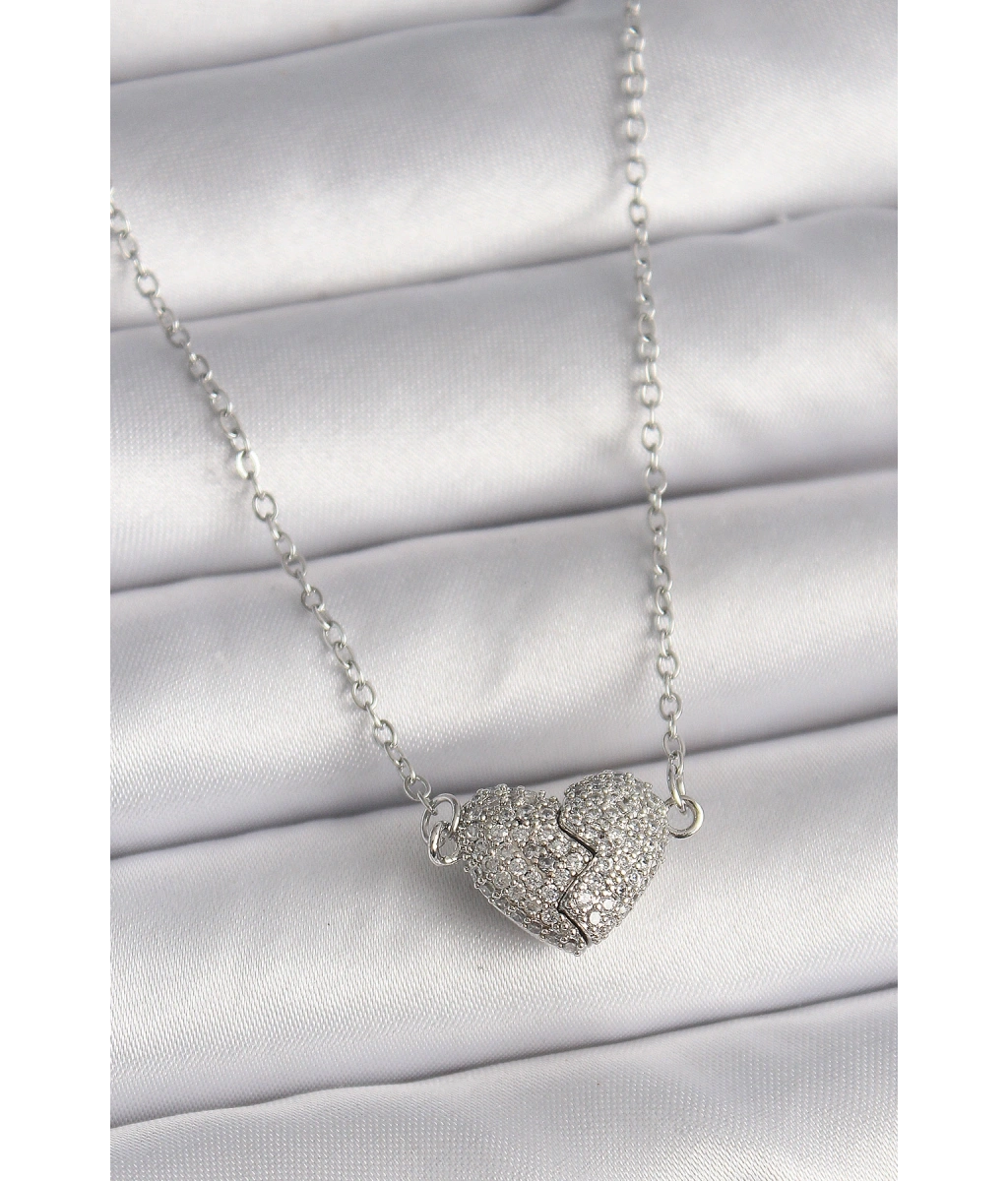 Shoecide 316l Çelik Gümüş Renk Zirkon Taşlı Mıknatıslı Kalp Model Kadın Kolye