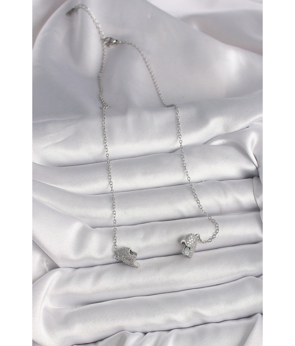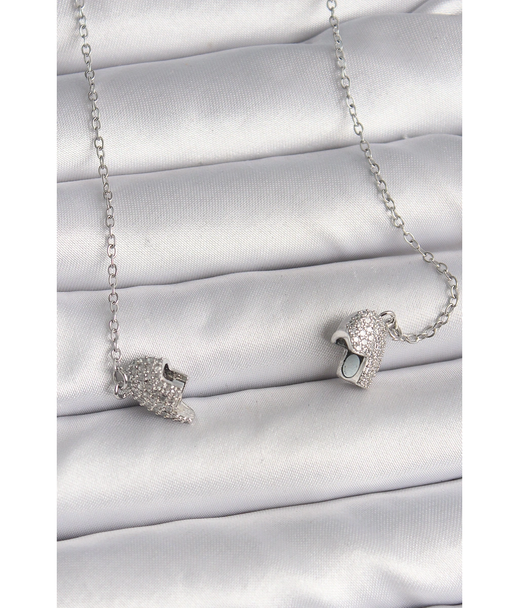 Shoecide 316l Çelik Zincir Gümüş Zirkon Taşlı Kalpli Kadın Kolye