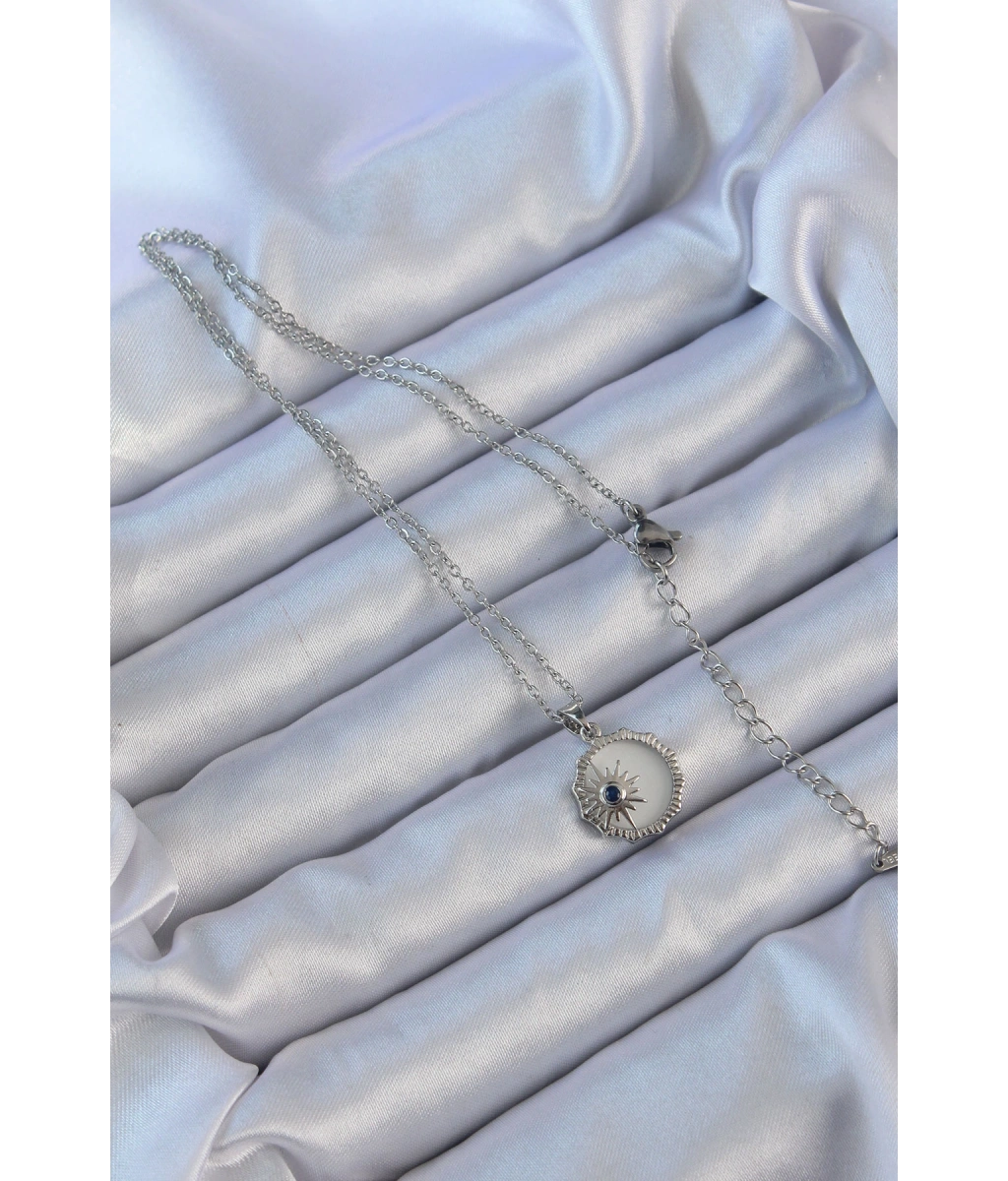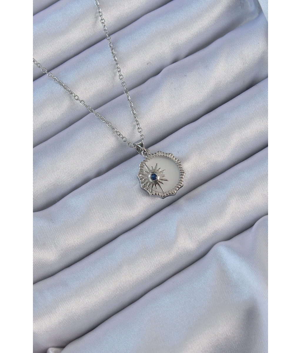 Shoecide 316l Çelik Gümüş Renk Zirkon Taşlı Mineli Kutup Yıldızı Kolye