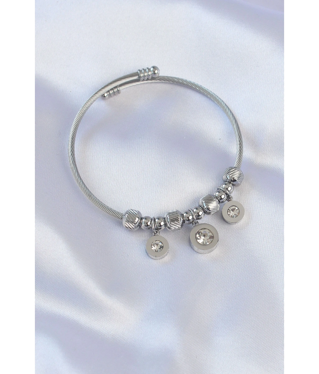 Shoecide 316l Çelik Gümüş Renk Zirkon Taşlı Model Charm Bileklik