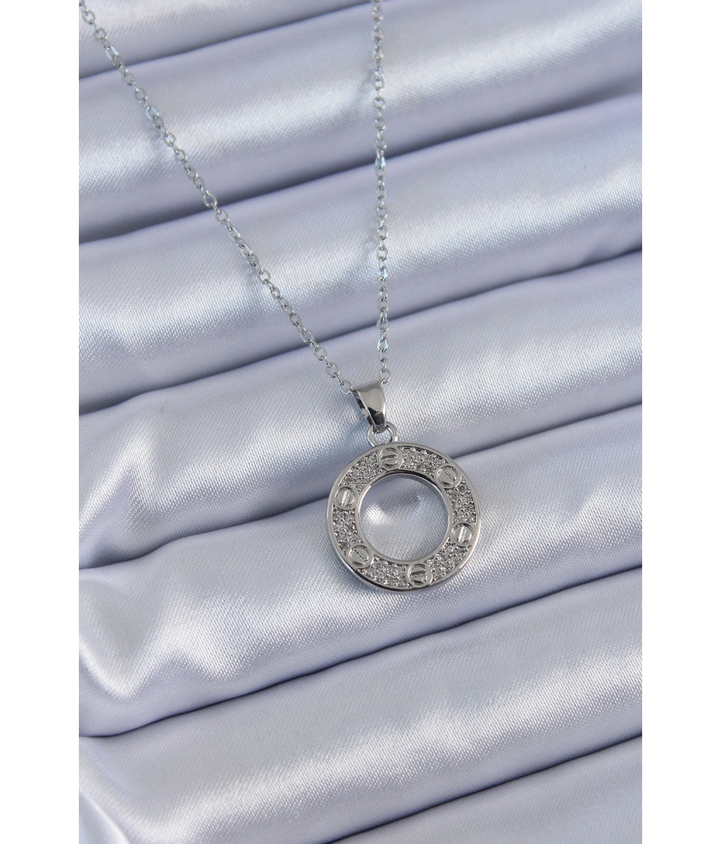 Shoecide 316l Çelik Gümüş Renk Zirkon Taşlı Model Kadın Kolye