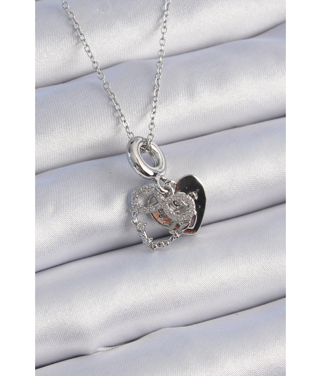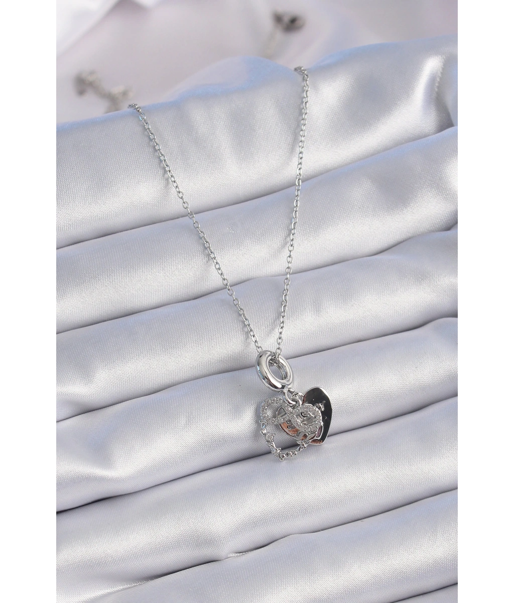 Shoecide 316l Çelik Gümüş Renk Zirkon Taşlı Sonsuzluk Kalp Figür Charm Model Kadın Kolye