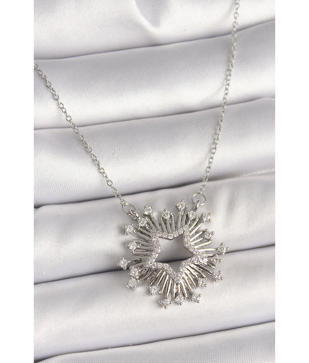 Shoecide 316l Çelik Gümüş Renk Zirkon Taşlı Yıldız Model Kadın Kolye