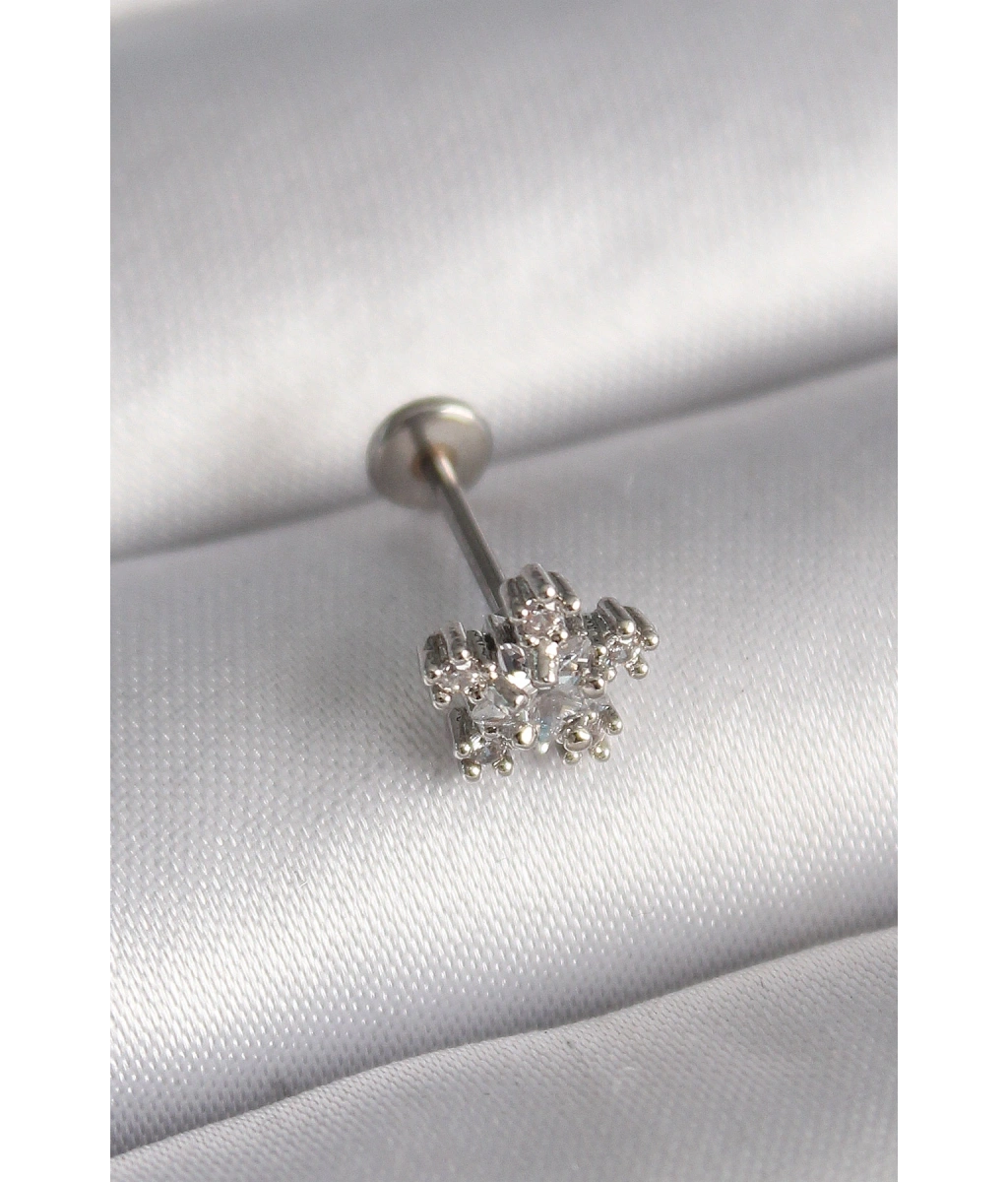 Shoecide 316l Çelik Gümüş Renk Zirkon Taş Detay Beyaz Çiçek Model Tragus Piercing