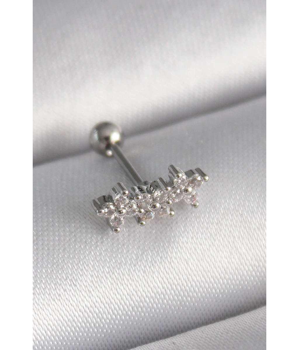 Shoecide 316l Çelik Gümüş Renk Zirkon Taşlı Yonca Tragus Piercing
